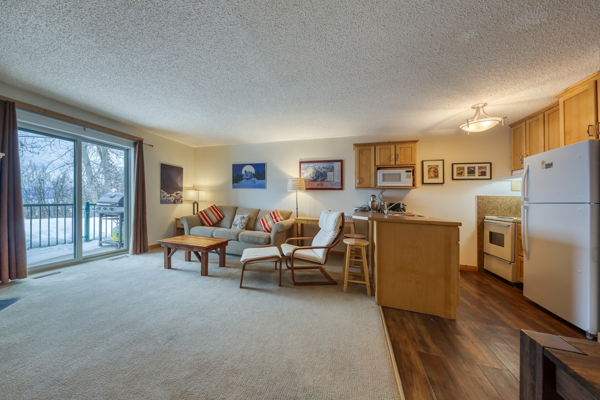 這間美麗、新翻修的飯店房間風格套房位於Kimberley 's North Star Resort ,距離T-bar頂部300英尺,您無法找到比這更好的地方……只需走出門,您就可以在幾秒鐘內滑雪!或者,如果您喜歡越野滑雪,Kimberley Nordic Centre步行僅需10-15分鐘。我們距離Trickle Creek高爾夫球場3分鐘車程…事實上,Kimberley擁有一切:自行車、釣魚、滑雪、雪地摩托車、獨木舟、漂流-您說的一切!