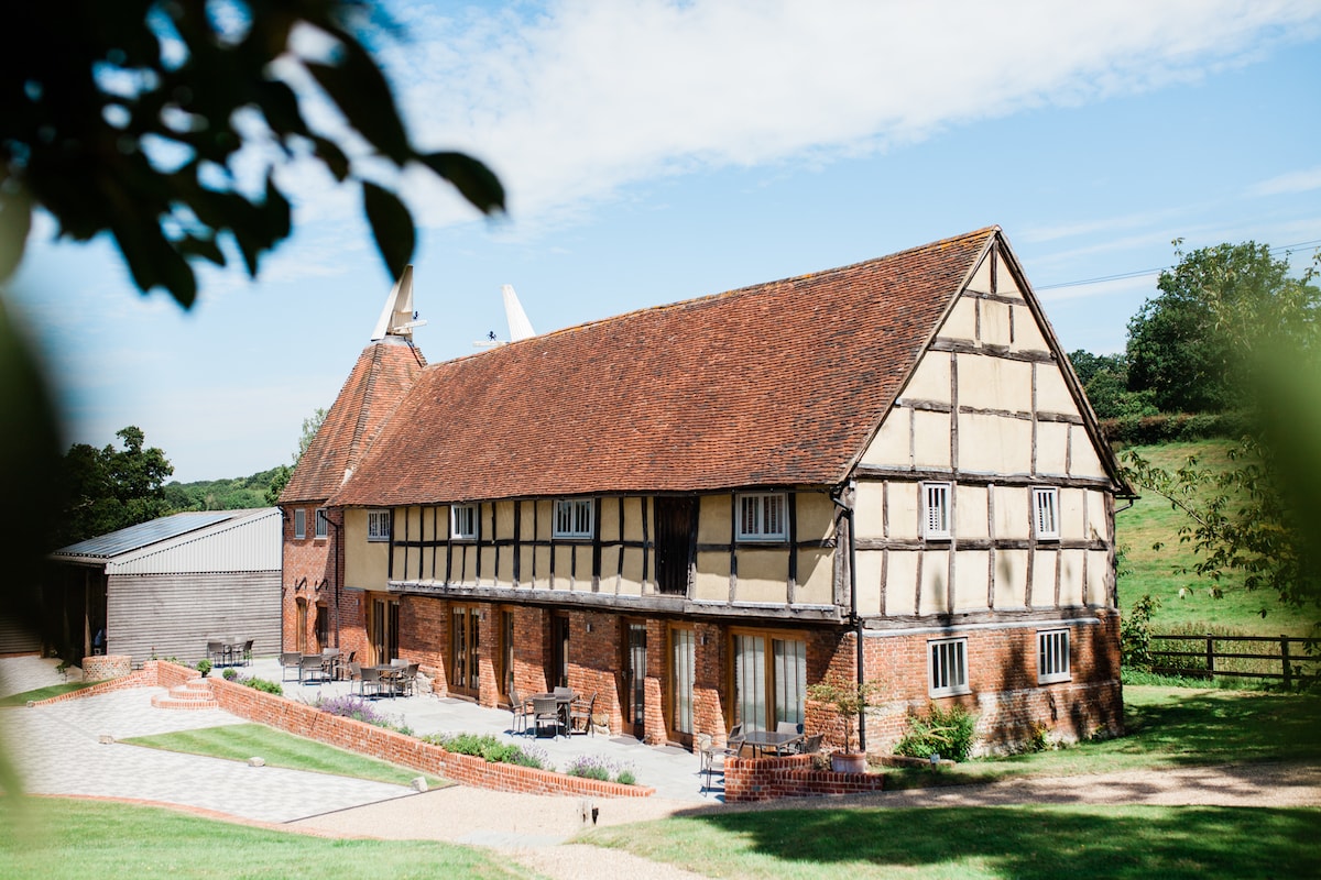 此房源明顯不適合單身人士入住。 很遺憾,不能帶狗。我們的小屋可俯瞰肯特的壯麗景色,坐落在一條安靜的農場小路上,旁邊沒有其他房屋。 我們距離坦布里奇韋爾斯(Tunbridge Wells)、湯布里奇(Tonbridge)和帕多克伍德(Paddock Wood)的中心10分鐘。 整個地板都有暖氣,非常舒適,也完全環保。