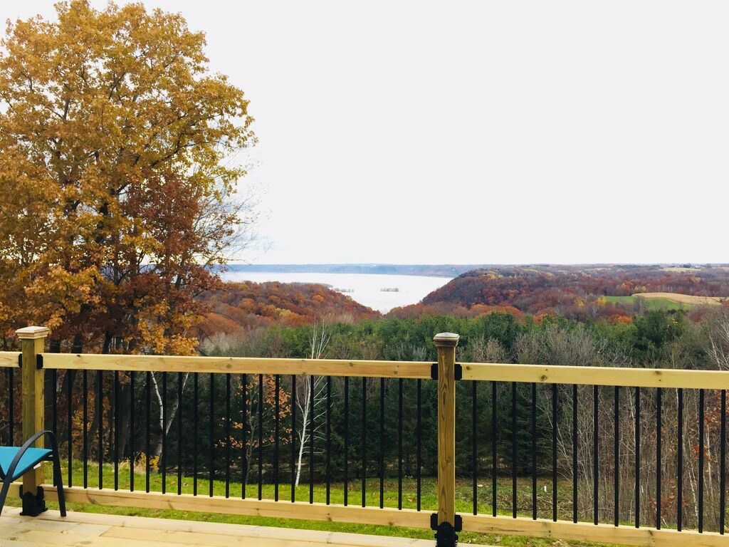 新建, ( 2018年) ,位於安靜、放鬆的2英畝鄉村環境中,可俯瞰密西西比河! 2500平方英尺。 距離Gatherings on the Ridge僅4英裏,距離歷史悠久的Prairie Du Chien市中心僅20分鐘路程,距離河流僅一小段路程。 可容納8-10人,主臥室配有1張雙人床、2張雙人床和雙人沙發床,地下室配有雙人床、2間浴室,主浴室配有噴射浴缸、全功能廚房(鍋、平底鍋、碗碟、烤麵包機、Keurig、咖啡壺、咖啡、鬆餅鐵等)