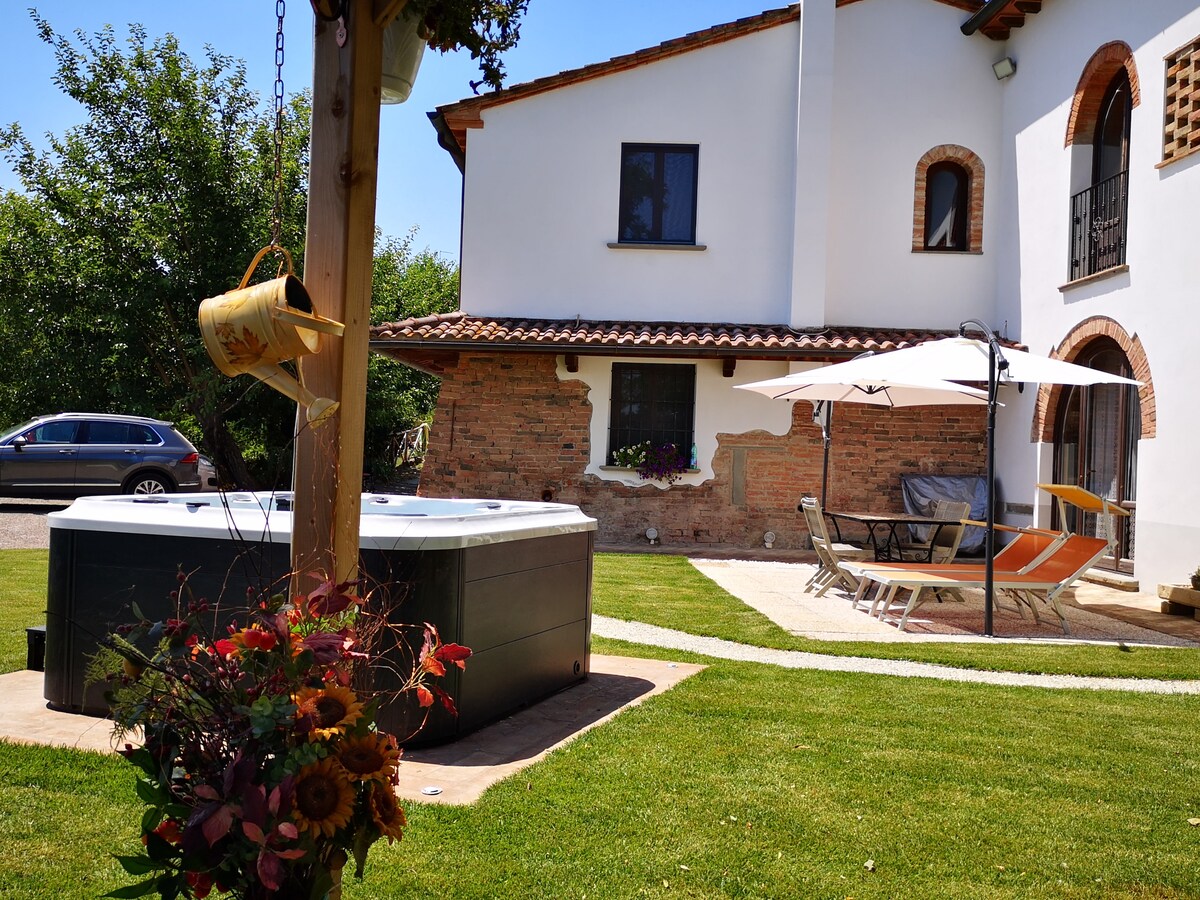 Porzione di casa colonica, situata sulle colline di Lajatico con vista sul Teatro del Silenzio. Il posto perfetto per chi vuole passare una vacanza rigenerante, a contatto con la natura, nella tranquillità, ma allo stesso tempo ama visitare nelle vicinanze borghi e città. Adatto a coppie, famiglie con bambini e amici a 4 zampe. La casa, circondata da bel giardino, dispone di una camera matrimoniale, una cameretta, una sala con divano e cucina attrezzata. Posto auto e giardino privato