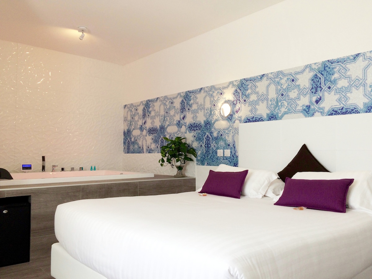 配備漂亮中心按摩浴池的房間