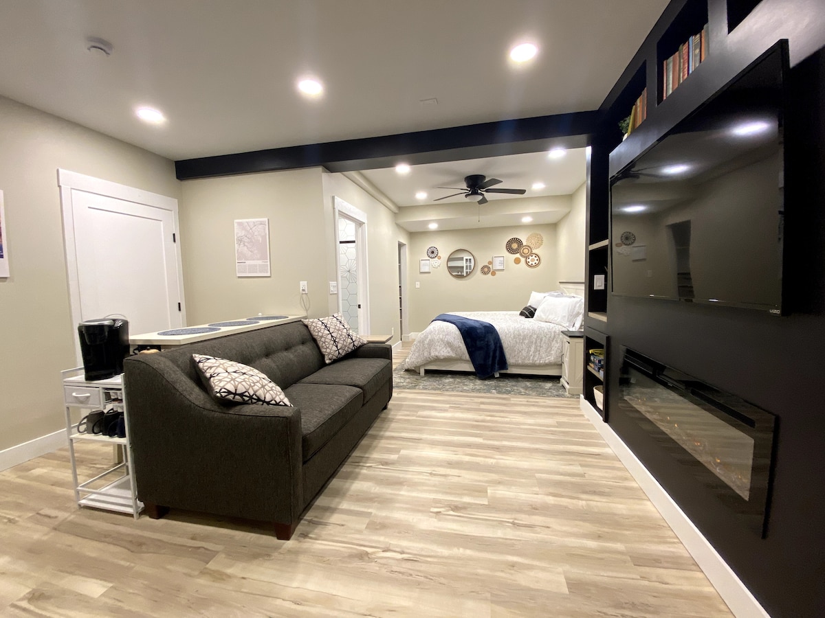 288平方英尺私人入口母親套房/單間公寓、全床、沙發、可折疊單人床、廚房、帶小淋浴間的浴室和55英寸智慧電視,配有有線電視、Netflix和WiFi。 禁止12歲以下的房客入住。 地理位置極佳:米德堡(14.4英里)、安納波利斯(15英里)、安德魯斯空軍基地(19英里)、華盛頓特區(19英里)、巴爾的摩(29英里) 附近機場:DCA (23英里)、BWI (270英里)、IAD (480英里) 大眾交通工具:地鐵巴士站(0.2英里)、新卡羅爾頓站地鐵、美國鐵路和灰狗巴士(9英里)
