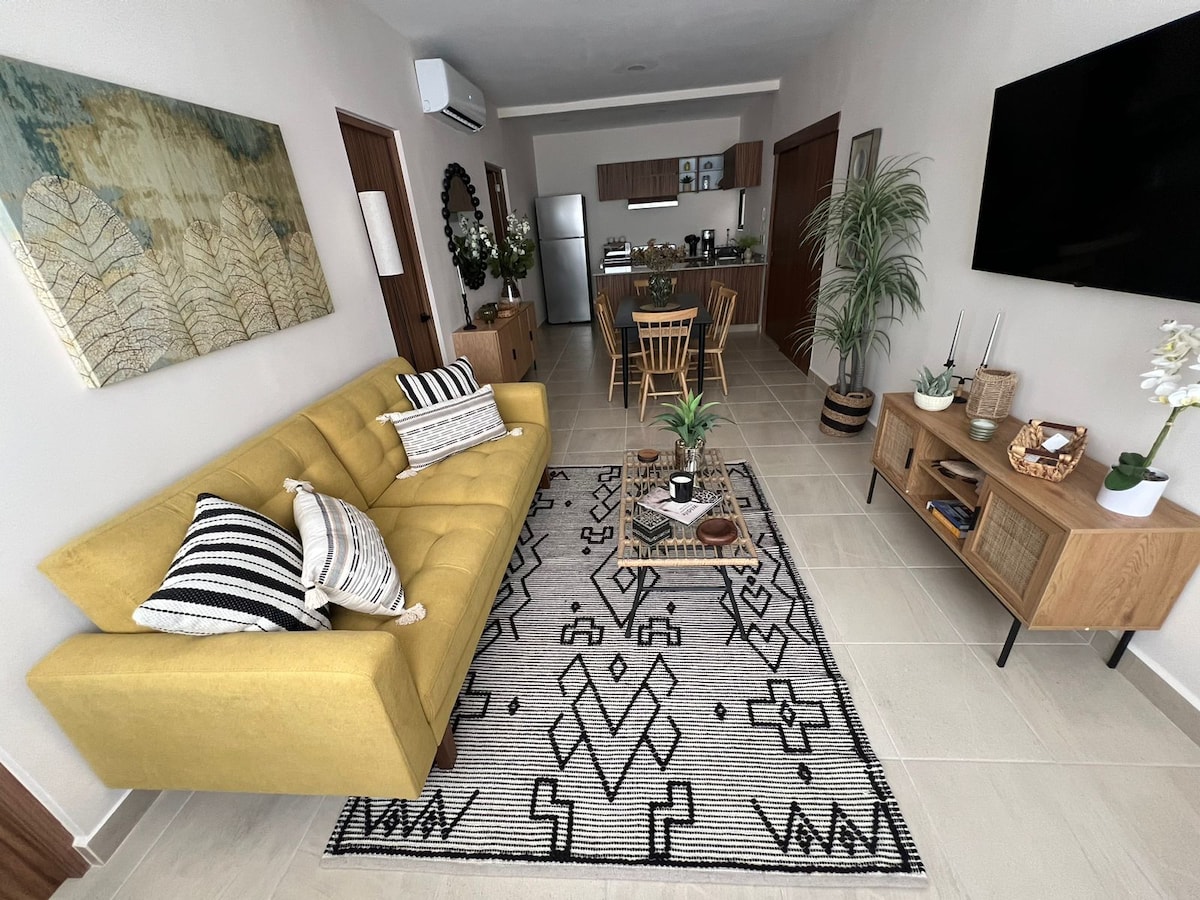 位於優越而低調的位置,是一個私密而安靜的空間。您的住宿將是美好而寧靜的。 位於著名的 Fracc. Reforma 區中心的私密安靜公寓。 兩間舒適的臥室(一間雙人床和一間單人床),主臥室有自己的浴室。 客廳、餐廳和廚房。 公寓距離海邊不到 10 分鐘(步行)。 該住宅區擁有市內最好的餐廳、咖啡廳和娛樂場所。