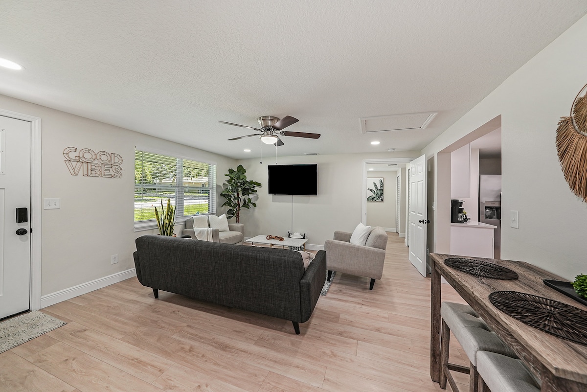 在這個平靜時尚的空間放鬆身心。 全面翻新和新裝修的房子,靠近Zephyrhills市中心區,靠近水晶泉保護區和希爾斯伯勒河州立公園等自然景點。 靠近景點: ●Zephyrhills跳傘城 ●大力神公園和水上樂園 ● 瑟佛希爾斯軍事歷史博物館 ● 微風山啤酒公司 - ZBC