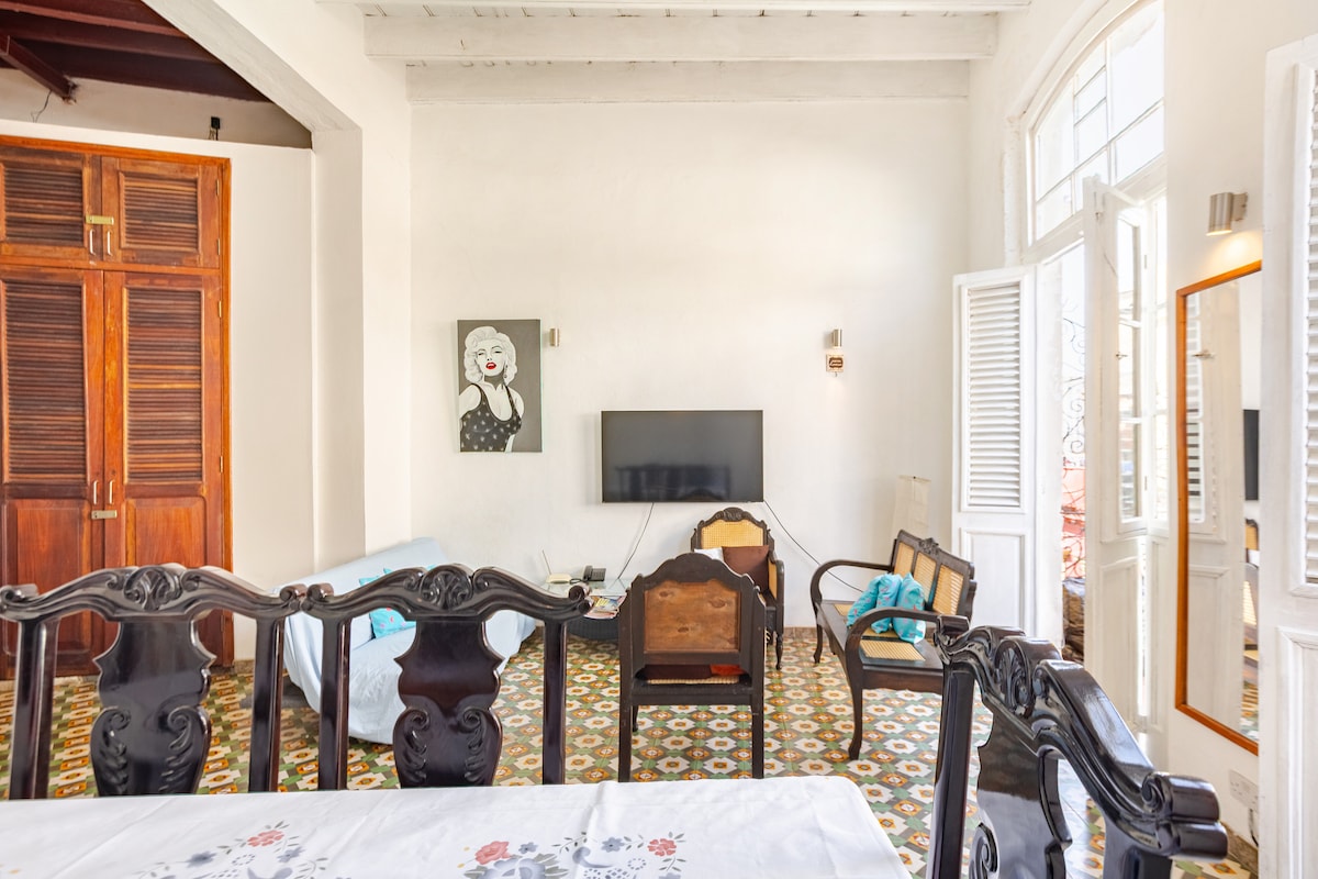 Private apartment in a Colonial bulding full of Natural light, High ceilings. Comfortable with Excellent location in the heart of Old Havana. Embrace total independence. Private rooms with bathroom and double beds, dining and living room. Free internet(30hrs), Mobile data Sim no Extra charge. Excelente view from the balcony also AC, electric fan in the Entire apartment. Only steps from all main tourist attractions in Old Havana life. NO power cuts. A great place for a Pleasant stay