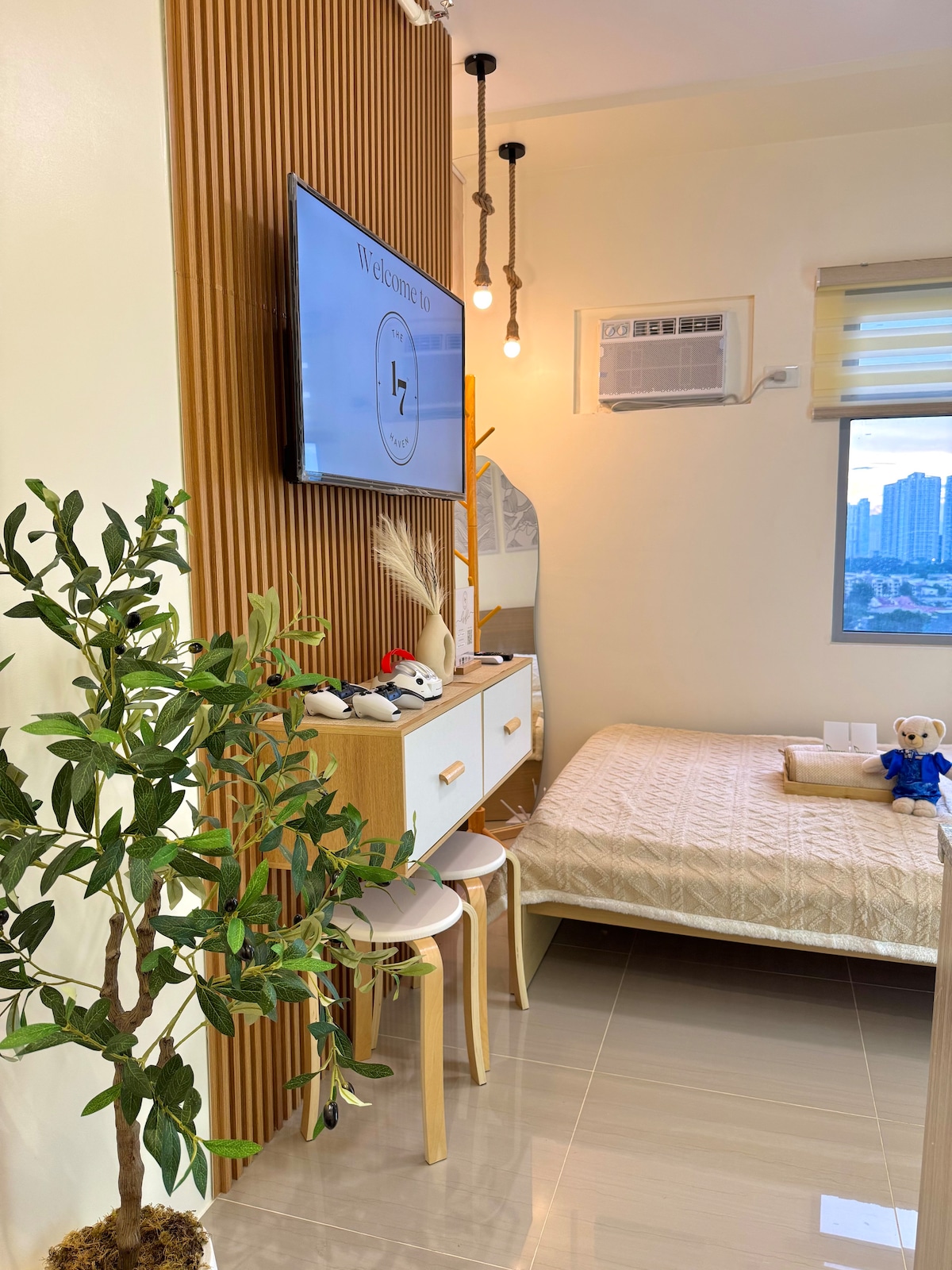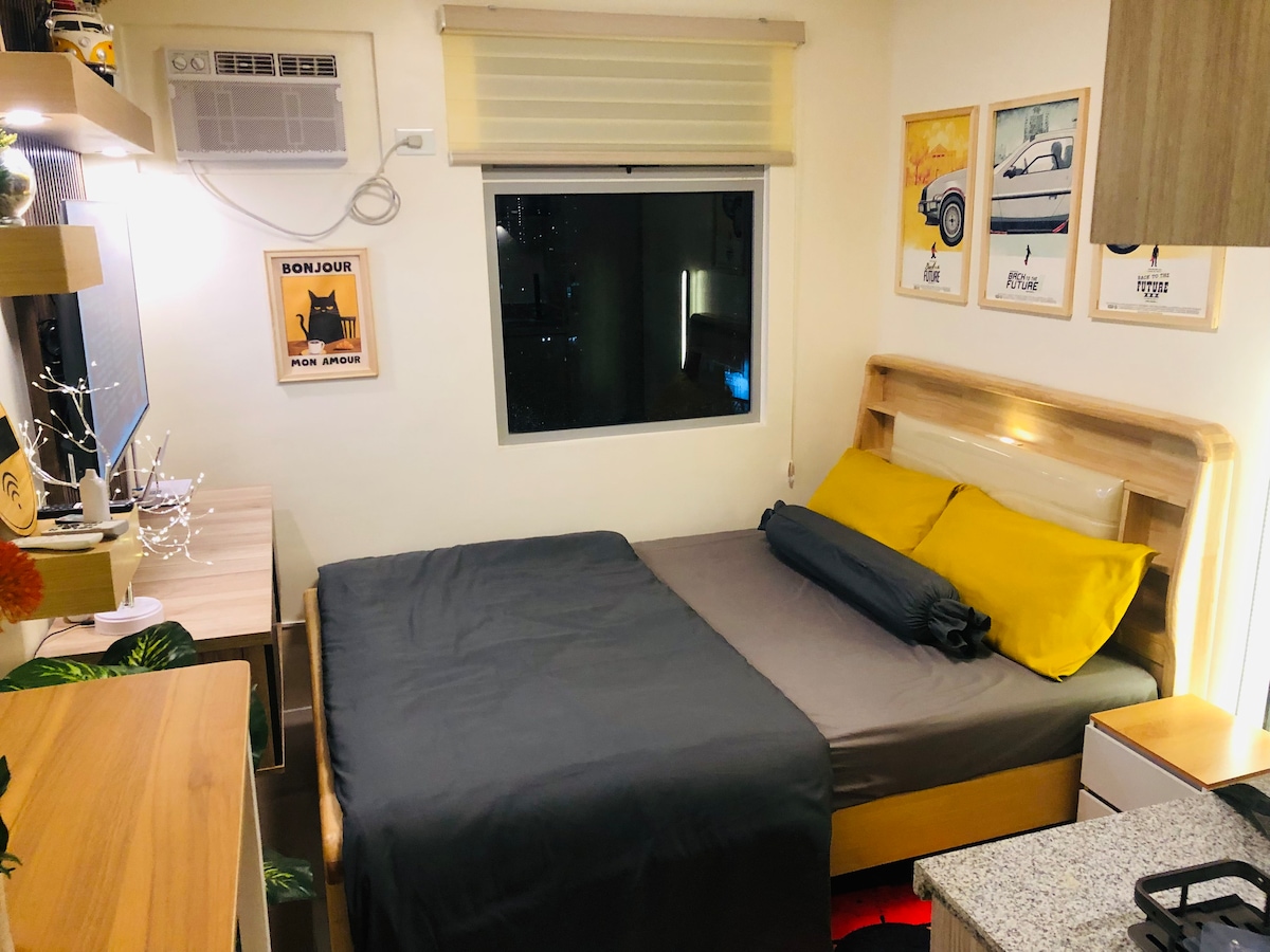 Imagine your 5 minute walk home from a concert at Araneta Coliseum or New Frontier Theatre. Art in Island, Bellini's, Habanero Cubao Expo are definitely walkable distance from the condo. Get your seafood fix at Dampa after a swim in the pool or shopping at Gateway Mall. Equipped with both task and mood lighting, the unit is great for work from home and staycations. The stay includes same building access to parking, pool, gym, billiard table, jogging trail, basketball court and 24/7 security.