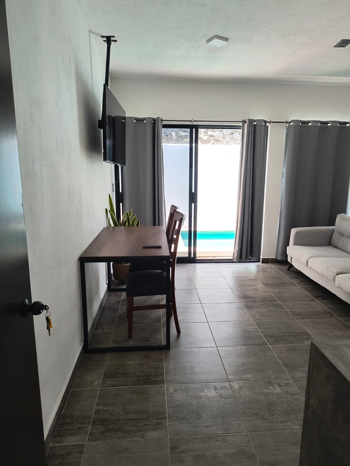 獨立房屋,單層。 3 間臥室。 非常適合家庭和情侶,提供 24 小時保安服務。 私人花園配有烤架,泳池可選加熱,每天需額外收費 600 比索;有頂露臺,配有 6 人桌,私人停車位可停 2 至 3 輛車。 位於非常安靜的區域,氣候極佳。