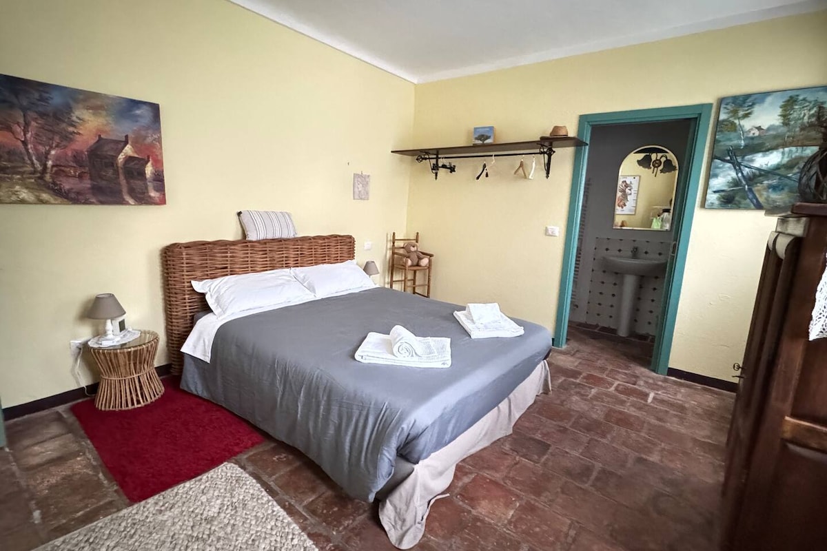這是一套根據生物建築原則翻新的公寓,尊重可追溯到十八世紀中葉的農舍。 客廳區域的拱頂和一面牆被留下,強調您將入住的地方的古老。廚房現代化,配備電磁爐和各種烹飪用具。桌子是一件獨特的作品,豐富了環境。 浴室設計獨特,尤其是淋浴間是從壁龕中開闢出來的。