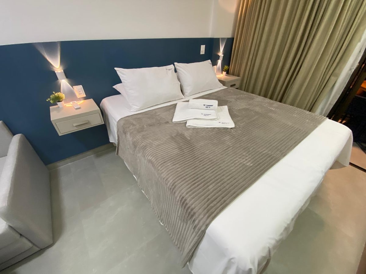 我們的公寓設計最小的細節,為房客提供獨特而難忘的體驗。 這間公寓擁有最大的私人泳池,位於加林哈斯港(Porto de Galinhas)中心,配有瀑布、淋浴間、43 吋智慧電視(配有NETFLIX和PRIME VIDEO)、Wi-Fi、18,000 BTU空調、有蓋停車位(有12個旋轉空間)、超級舒適的床、沙發床、屋頂泳池、健身房、美食區。