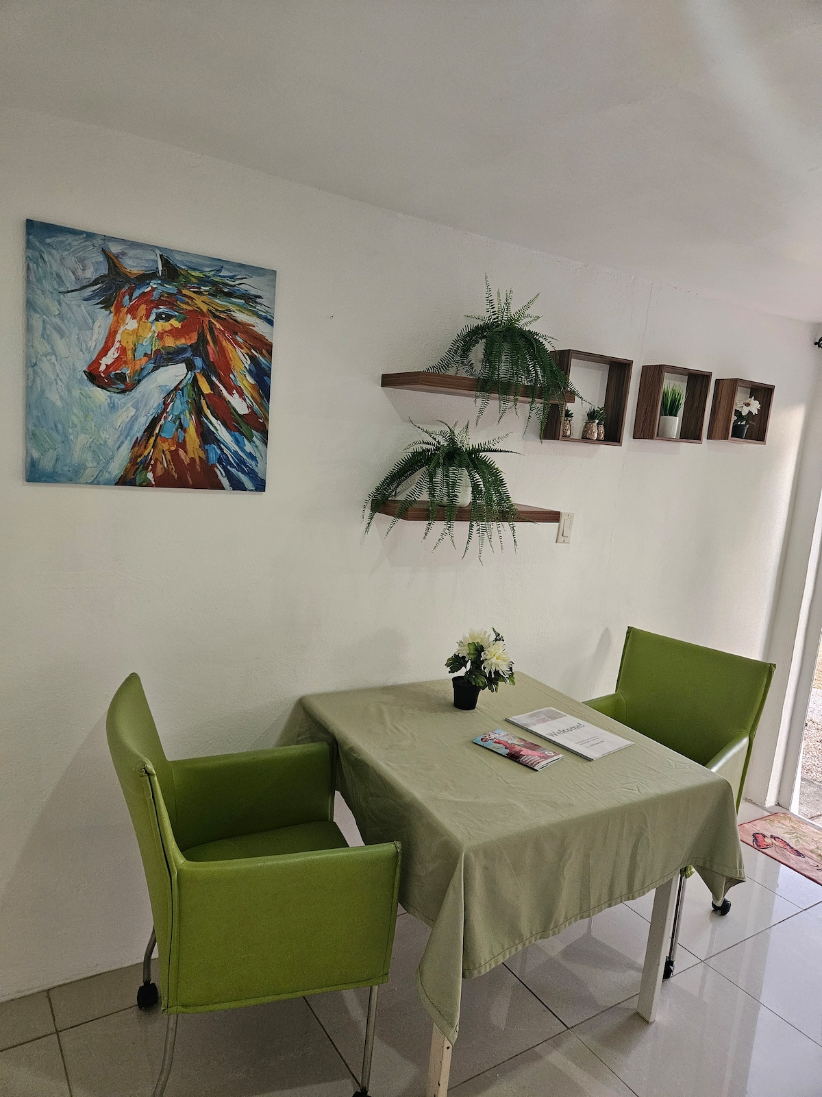 Het centraal gelegen appartement bevindt zich in een rustige wijk. De vide, het hout en het groen geven het appartement een gezellige sfeer. Het appartement biedt zich bij uitstek voor gasten die opzoek zijn naar een betaalbare accomodatie en vanuit een centrale locatie het eiland willen verkennen. Tevens goed geschikt voor gasten die (remotely) willen werken op het eiland. Er bevindt zich een houten vide wat als slaapkamer dient. De ruimte kan volledig gekoeld worden met airconditioning.