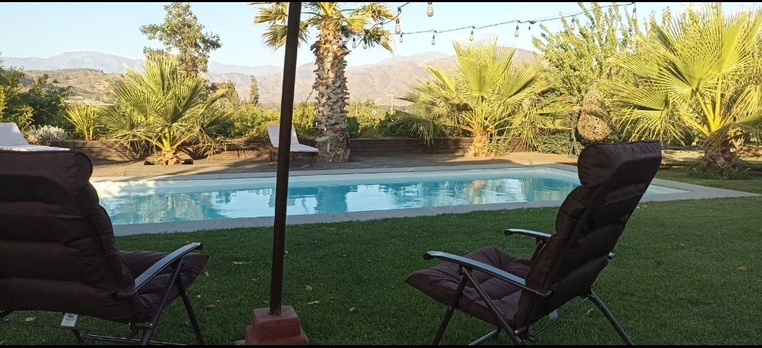 馬拉羅科山谷( Mallarauco Valley )美麗而寬闊的地塊,僅供獨家使用。 她的家,它會為您提供所有舒適的住宿體驗,讓您感受像家一般舒適。 與親朋好友分享和享受愉快的氛圍,四周環繞著大自然。 位於非常安靜的地方,距離聖地亞哥市中心僅74公裏 大型綠色區域、遊泳池、營火區、quincho、果樹和美麗的玫瑰花園,均僅供您的團體使用,為您提供美好的時刻。