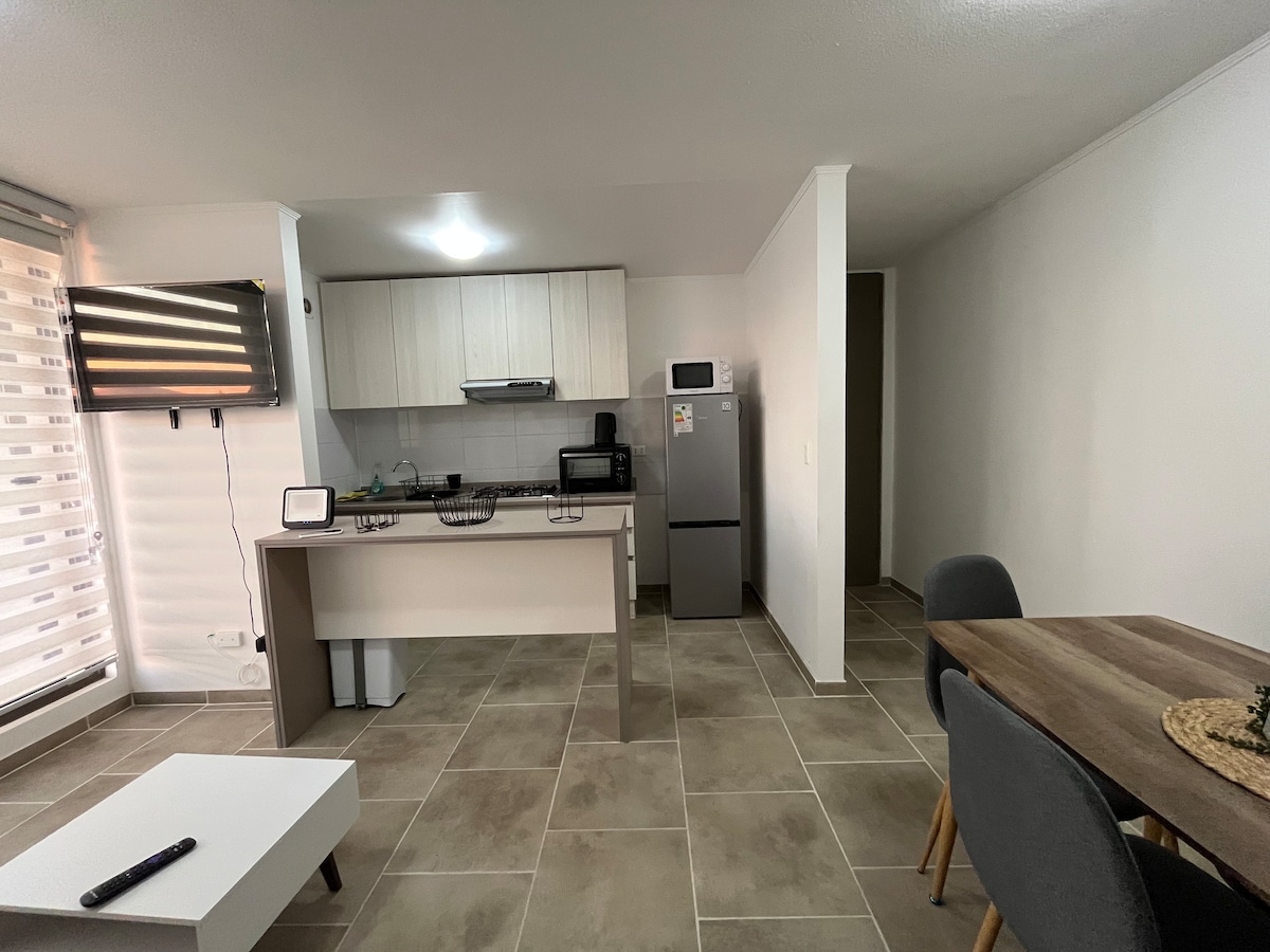Rodéate de estilo en este destacado espacio cercano a centro comercial y con excelente conectividad a los distintos puntos de la ciudad y carretera. Disfruta de tu estadía en un lugar que te invita a la tranquilidad con todas las comodidades que requieres para un buen descanso. Departamento con 2 habitaciones, 1 baño, living comedor y cocina full equipada, cuenta con wifi, lavadora, aire acondicionado y TV en dormitorio principal.