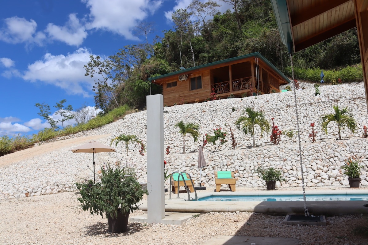 Acogedora cabaña, rodeada de árboles nativos y un jardín de heliconias y otras plantas que transmiten frescura y buenas vibras. A 30 minutos de playa Sámara, a 200 metros de un río apto para refrescarse, a 3 minutos del centro de Nicoya. Un lugar que combina tranquilidad y comodidad, apto para trabajar, descansar o utilizar como punto para desplazarse a diferentes playas y otros sitios de interés. Equipado con cocina y utensilios, lavadora, secadora, refrigerador y dos camas matrimoniales.