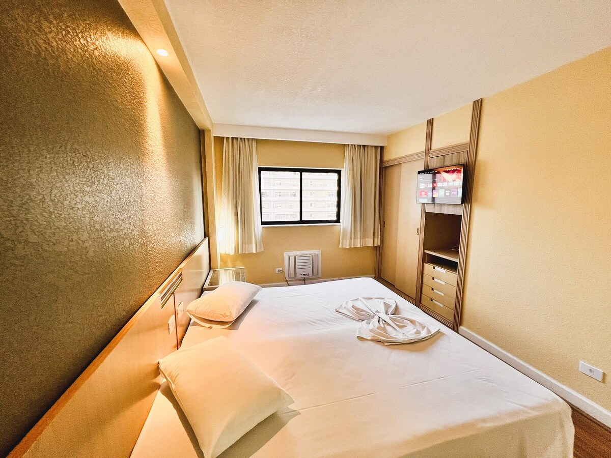 現代化的單間公寓,位於市民中心—非常適合那些想要尋找舒適、實用和優越位置的人。 空調環境、設備齊全的廚房和智慧電視—非常適合休閒或工作。 🛏️最多可供4人舒適入住,優質床上用品。 •溫水泳池 •健身房 •桑拿 • 露台 •洗衣房(付費) ⚠️ 如要使用泳池,公寓需要出示醫療證明。 🚗大樓內有停車位,每晚35雷亞爾 透過 PIX 付款給房東。