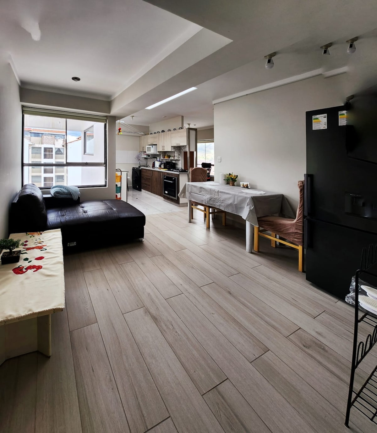 ubicado en el 3er piso este hermoso y Cálido departamento familiar, ha 6 minutos de el aeropuerto y ha 12 minutos del centro histórico del Cusco en vehículo, cuenta con cocina, baño con ducha de agua caliente, comedor, habitaciones bien amobladas, TV, WIFI.