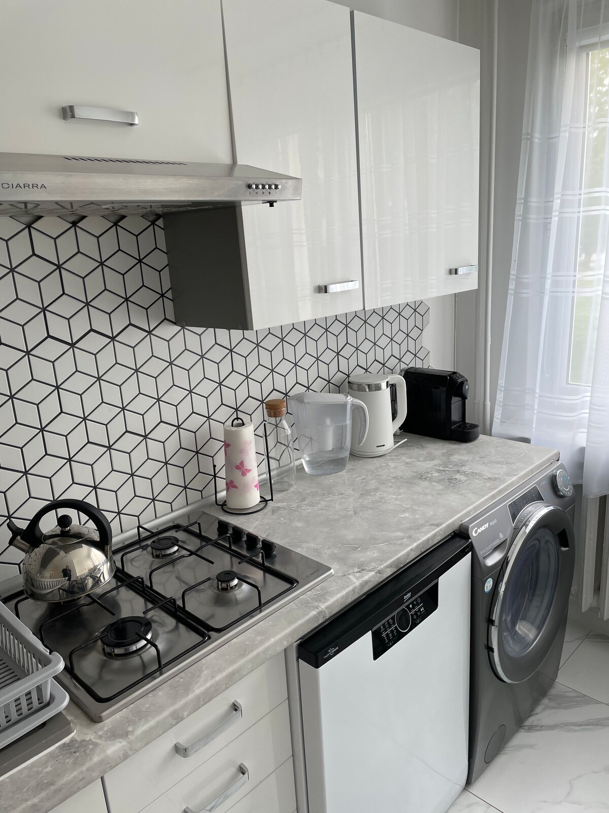 獨立的現代化公寓,面積45平方米。 客廳、臥室、廚房和浴室。 2018年全面翻修後的公寓。 兩間房間可供4人入住:臥室( 2張牀: 160x200和90x200 )和客廳沙發牀。 設備齊全的廚房。 由玻璃隔開的舒適淋浴間。 洗衣機、盥洗用品櫃。 毛巾、基本盥洗用品。適合商務旅客和旅客入住。 從全國各地的機場接您。