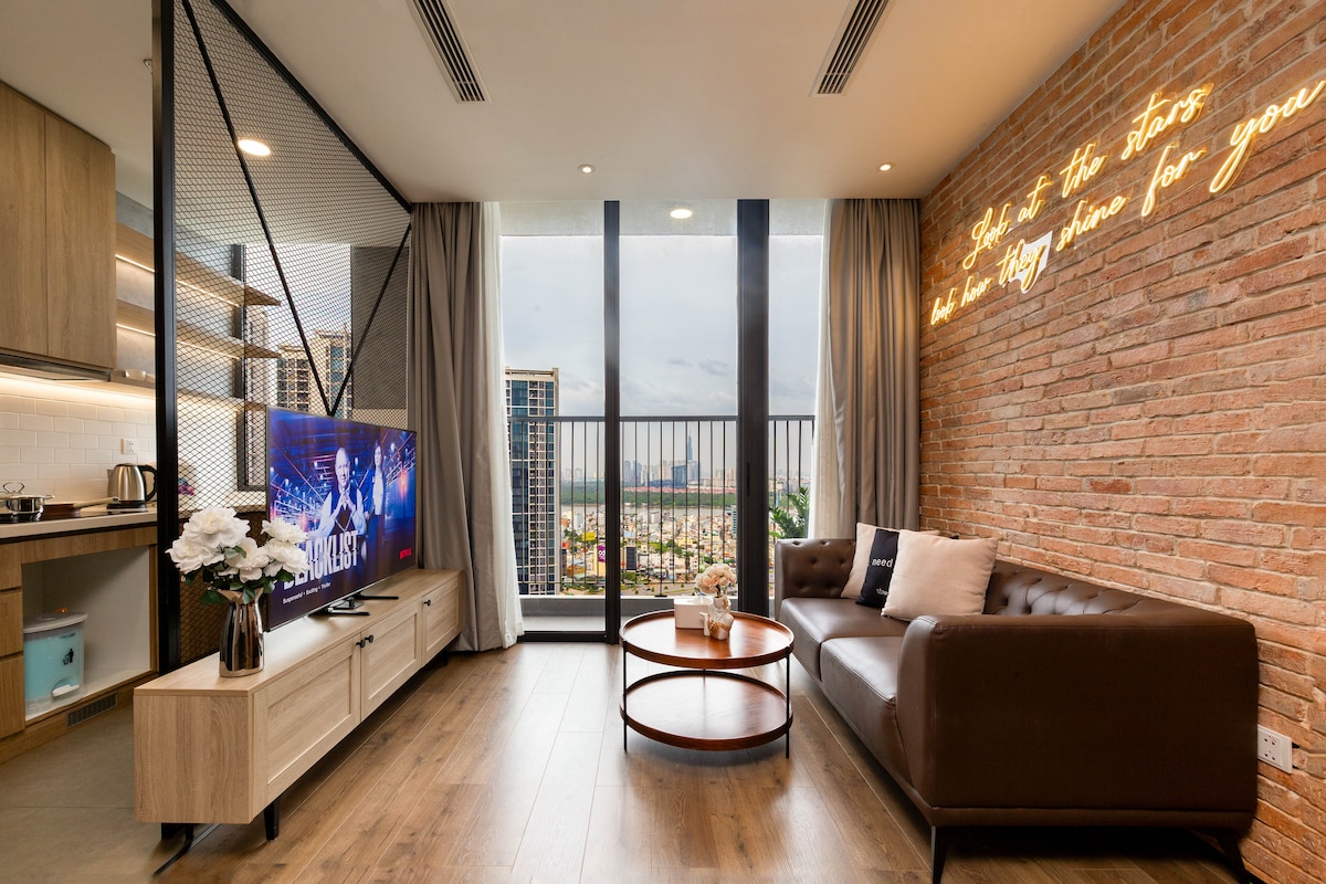 華麗的11樓電梯公寓,可欣賞壯麗的城市景觀,位於The One Sai Gon大樓- 1區中心- Ben Thanh市場附近。這間公寓位於最佳位置,步行幾分鐘即可抵達繁華的碧文街(Bui Vien)、滨城市場(Ben Thanh Market)、美術館、巴士站、西貢高島屋(Takashimaya Saigon)、漂亮的餐廳和酒吧。這個空間為尋找家外之家的疲倦旅客提供溫馨的休息。
