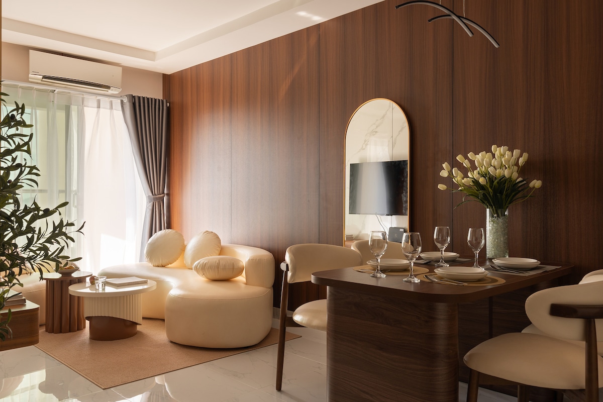 Clouden —位於西貢第1區中心的極簡都市度假勝地。 這間時尚的單間公寓提供天際線和花園景觀、100 吋 4K 投影機、全套廚房、洗衣房和超快的 WiFi。 距離碧文街(Bui Vien)和Ben Thanh市場僅幾步之遙,位於市中心,但很安靜。 享受屋頂露台、現代化設備與服務,以及無鑰匙入口。 非常適合情侶、獨行旅客和小家庭,在探索城市充滿活力的文化後,尋求舒適、便利和寧靜。