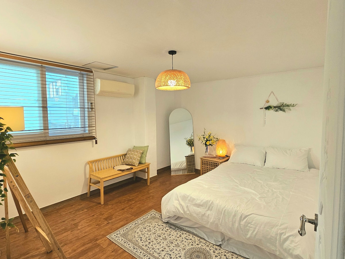位置、交通、房間狀況、乾淨、友善、價格實惠的住宿👍👍 歡迎房客在乾淨舒適的住宿中放鬆身心😄 Stay Spring Day | 在 Kim Kwang-seok 路遇到的感性住宿 ✨ 房源介紹 ✔ 寬敞的空間 – 3 間客房和 4 張雙人床 空間寬敞,適合家人、朋友或任何人入住 ✔ 舒適的睡眠 – 飯店級鵝絨被和柔軟的床上用品,讓您享受舒適的夜晚 ✔ 設備與服務 – 提供飯店級毛巾和基本浴室用品 配備✔簡單烹飪器具的廚房,可享用輕食 為✔ 房客提供造型支援 – Dyson 吹風機和直髮器 ✔ 長期住宿房客專用 – 洗衣機和烘乾機 ✨ 最佳位置和周邊資訊 步行 1 分鐘即可抵達✅Kim Kwang-seok 再繪路 步✅ 行 5 分鐘即可抵達慶大醫院站 – 大眾交通便利 步行即可抵達✅附近的餐廳和咖啡廳 交通便利,可前往✅東城路、西門市場、橋洞、水城池等 ※ 然而,由於別墅的特性是多個家庭住在一起,因此我們將不勝感激,如果您能在深夜控制噪音。