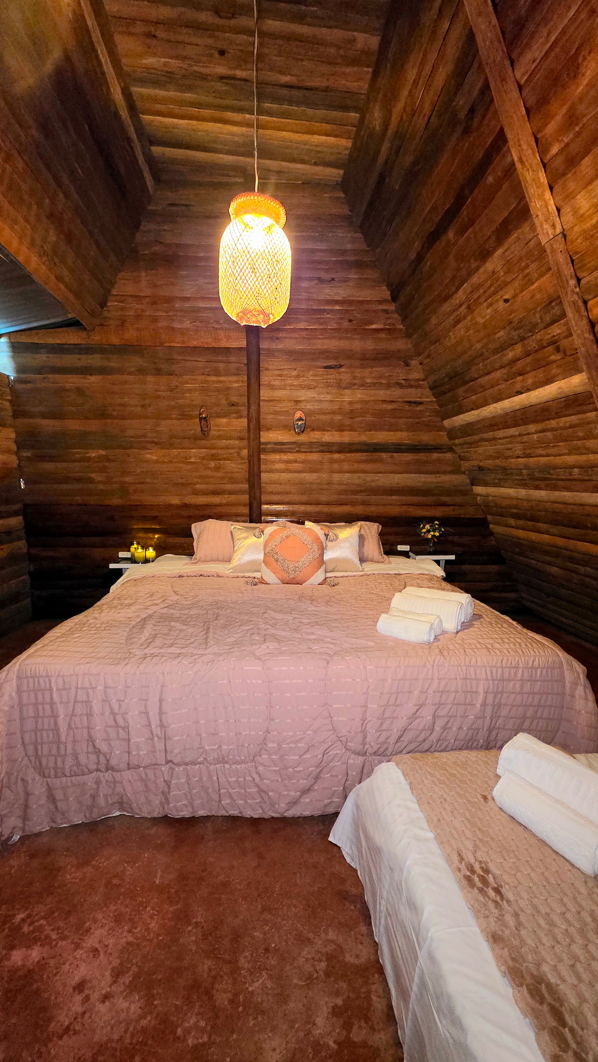 醒來,在樹木和鳥鳥間輕柔的低語中醒來嗎? 我們的獨家小木屋位於森林保護區內,在寧靜的環境中俯瞰城市、森林和山脈,讓您忘記城市的喧囂。 日出和日落令人嘆為觀止。 享受我們的小屋,配有獨立浴室、衛星網路、加熱按摩浴缸、天然水池、小徑和營火。