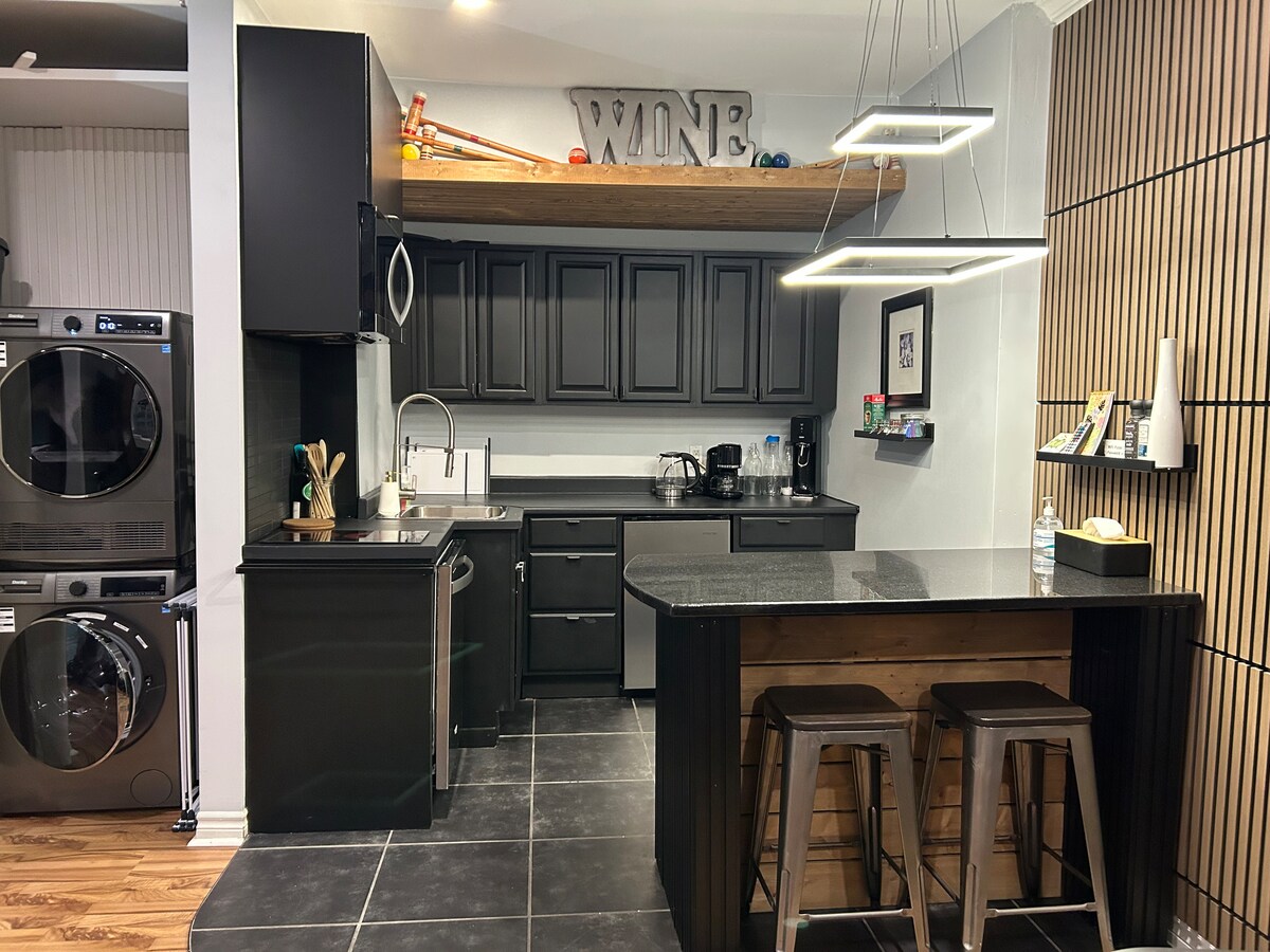 Enjoy a stylish experience at this centrally located basement suite. Designer finishes in this 1 bedroom plus sleeper sofa is ideal for a small group who wants a smaller, yet thoughtful place, close to downtown. Not missing a beat, this Garden Suite has everything you need for a comfortable stay: - fully stocked kitchen - spacious bathroom - living room with a 50" smart tv - comfortable queen bed & awesome flop out queen sofa (thick mattress) The best part - it has FREE parking.