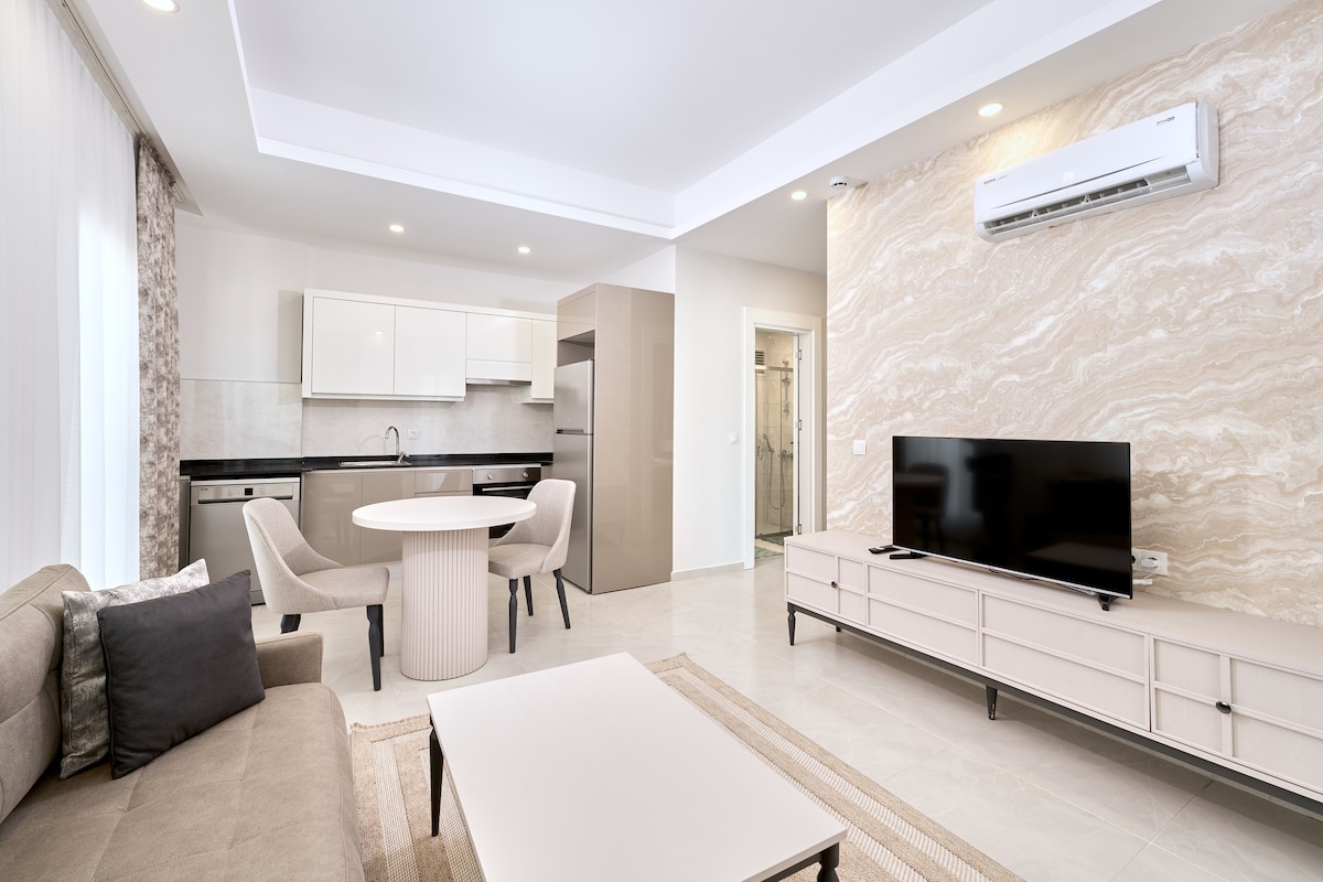 克里奧帕特拉海灘附近的公寓。 公寓位於阿拉尼亞市中心,距離著名的Kleopatra Plajı僅幾步之遙。 市內最好的地點之一:美麗的海濱長廊,有自行車道、運動和兒童遊樂場、綠色公園區域和噴泉、Alanya Aquapark、咖啡廳和餐廳—就在你的門口。 非常適合度假、冬季住宿、遠距工作或舒適的海邊生活。 海灘、市中心和充滿活力的氛圍—僅幾步之遙。