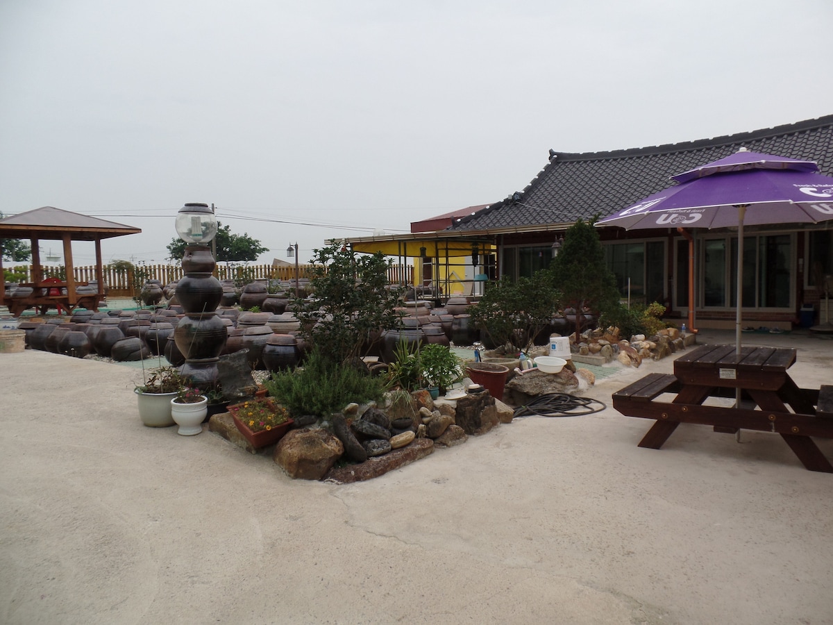 這是當地文化財180號的Mangindang House ( Kim Sun Gi-ok )。入住歷史悠久的房源,欣賞周圍的美景。我們準備了一個大花園,讓您可以享用燒烤和火苗。 烤炭是🔥用橡木和竹子制成的。 由於家園的性質,馬桶和淋浴間位於外面。與現有的韓屋住宿加早餐不同,房間設備在外面。這是一個不便,因為它是一個傳統的420年的房子? 您可以體驗它,從中經歷時間滑 移韓國王朝, 非常適合孩子四處奔跑!當有家人來到,這將是一個更獨特的體驗。祝您有個愉快的 入住Mangin Dang House ,那裏有👨👩👧👦歷史和自然。^ ^有更多疑問,請傳送訊息給我們!! 😃 # Jungnokwon # Meta Provençal #麵條街#開車20分鐘即可抵達Metasequaia