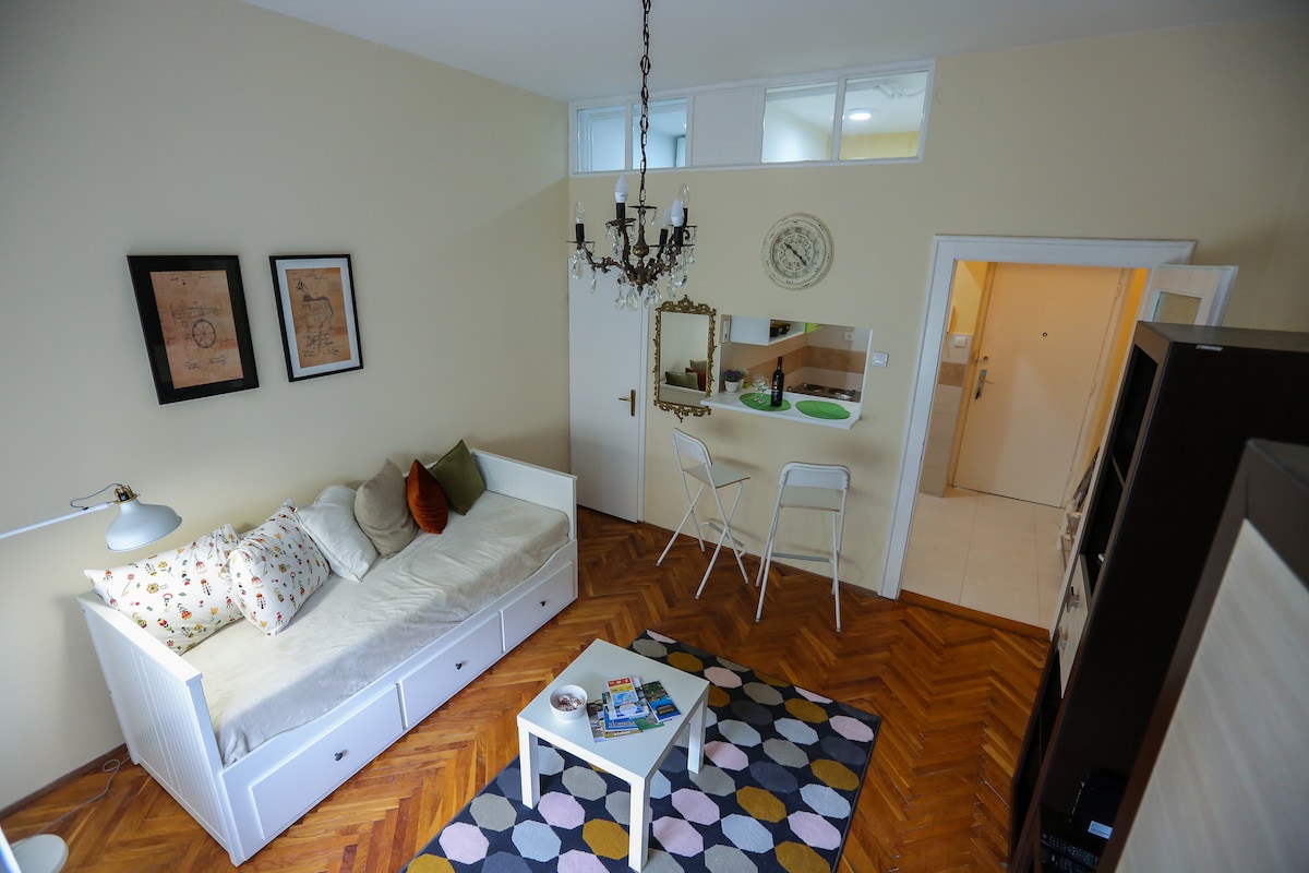 成為我們35平方公尺( 375平方英尺)公寓的首批房客之一,位置優越。安靜的街道,有鄉村外觀和菩提樹,讓您有機會感受諾維薩德的古老精神。 無論您是出差還是休閒,您都將位於優越的地理位置,靠近您想去的任何地方。公寓距離市中心廣場僅600公尺( 5分鐘)。 使用語言:英文、塞爾維亞文