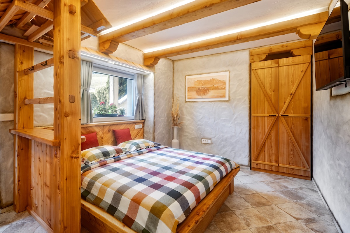 這是一棟有100年歷史的木屋,2008年在鄰近村莊拆除後,在我們的有機山區農場重建。在建造過程中,我們特別注意使用天然建築材料(蘆葦、黏土灰泥、舊木材)。屋頂使用傳統的落葉松木瓦。房子由一個大廚房爐和一個太陽能熱系統供暖,浴室有地暖。 這間溫馨的小屋(75 平方公尺)是我們 10 年來的住所。