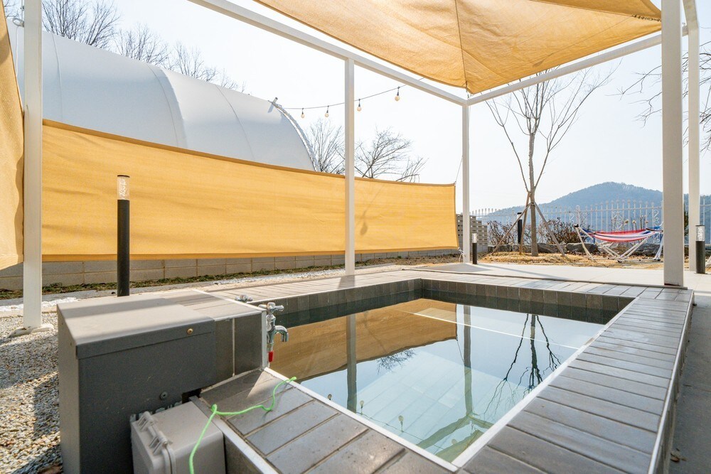 您好,我們是Onda ,正在研究和提供各種休息區域。 希望入住這裡的每個人都能度過舒適愉快的時光。 【住宿簡介】 2024年3月新開業! 距離Dongyeoju IC 2.7公裏,平日距離大都市區50分鐘。 您可以在寬敞的私人花園中充分享受燒烤和火坑。 在豪華露營區,您可以使用獨立的熱水泳池365天。 我們為每個網站提供盡可能的寬敞空間,讓您可以不受打擾地休息。 所有景點都能欣賞到全景和清爽的景色。 這是一個舒適的假期, The Hill Glamping。 [房間類型] 單人房類型( 1張雙人牀+廚房+ 1間廁所) *牀上用品是根據預訂人數提供。