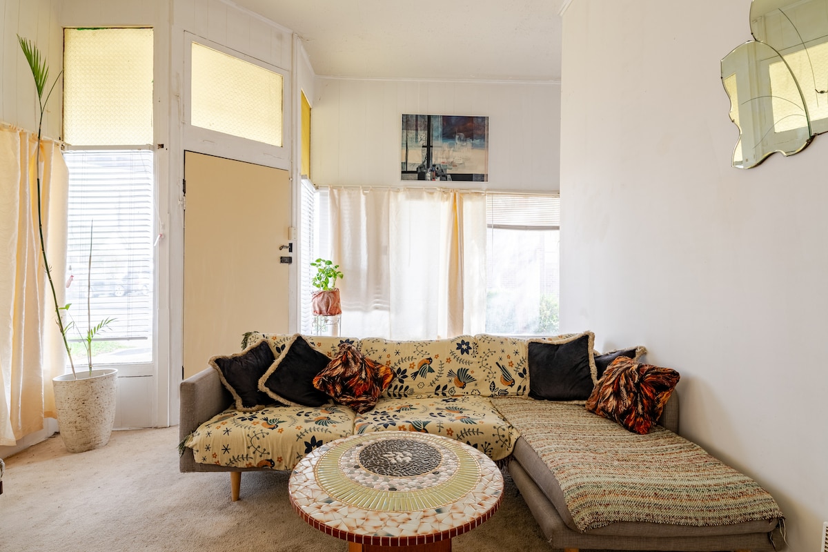 超級可愛,自給自足,鄉村小公寓。 坐落在鳥類充滿的花園中,外面有座位和火。 房東在現場,但公寓有自己的入口,保證隱私。 距離墨爾本CBD僅11公里,距離墨爾本機場19公里車程,帶點澳洲的寧靜。 路邊有免費停車位。 步行1.5公里即可抵達電車站,輕鬆前往墨爾本最酷的市中心北部郊區-菲茨羅伊、諾斯科特、布倫瑞克。 可考慮長期住宿諮詢。
