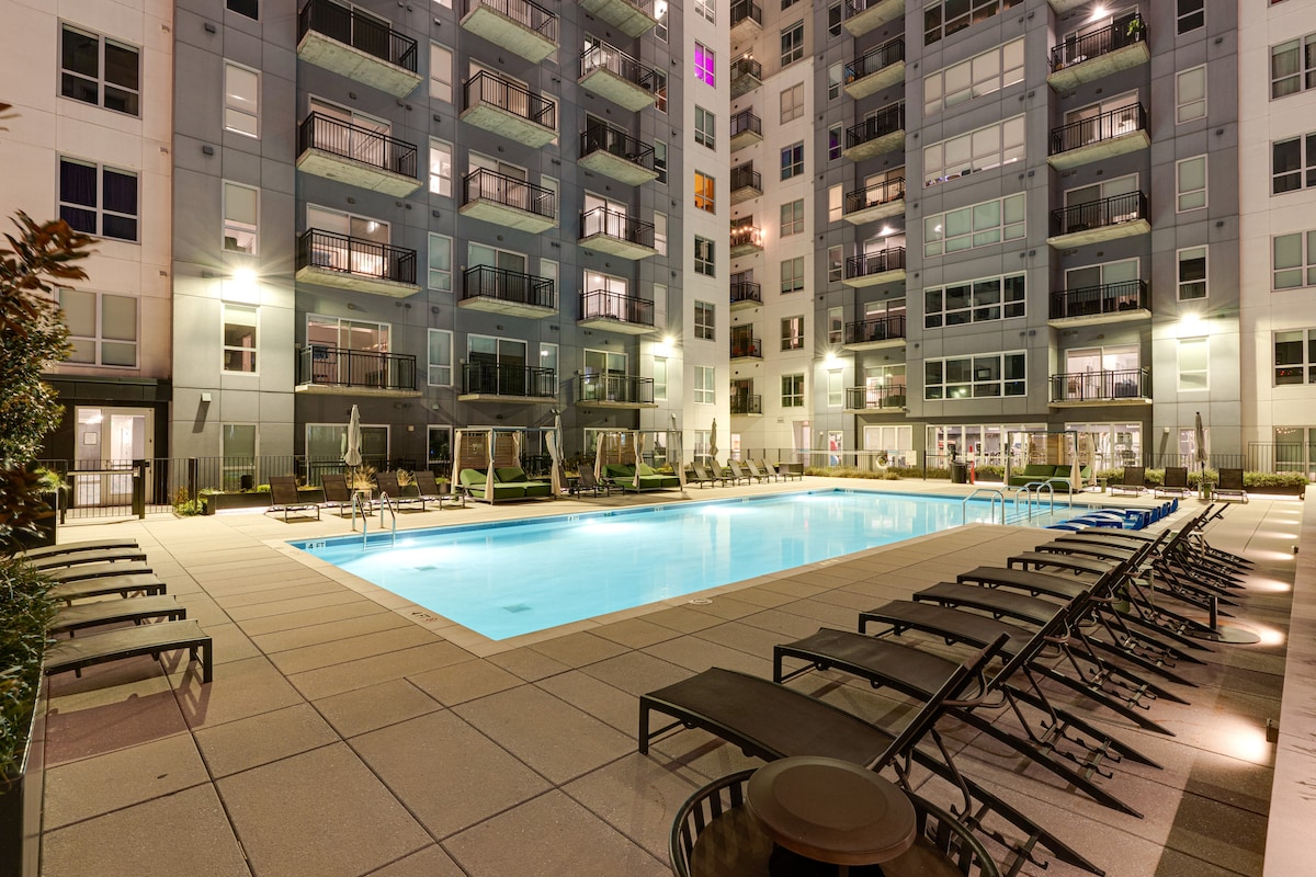 Relax in a bold, indulgent downtown escape featuring custom design and eclectic decor just 2 blocks from Broadway. The spacious residence features a KING bed and QUEEN pullout sofa bed, full kitchen, coffee bar, and free parking. Guests enjoy access to an outdoor pool, fitness center, climbing wall, and courtyard with grills and fire pits. Relax on your private city-view balcony with coffee or evening sip of wine! Brand new space-hosting additional properties in same building! STR2018073468