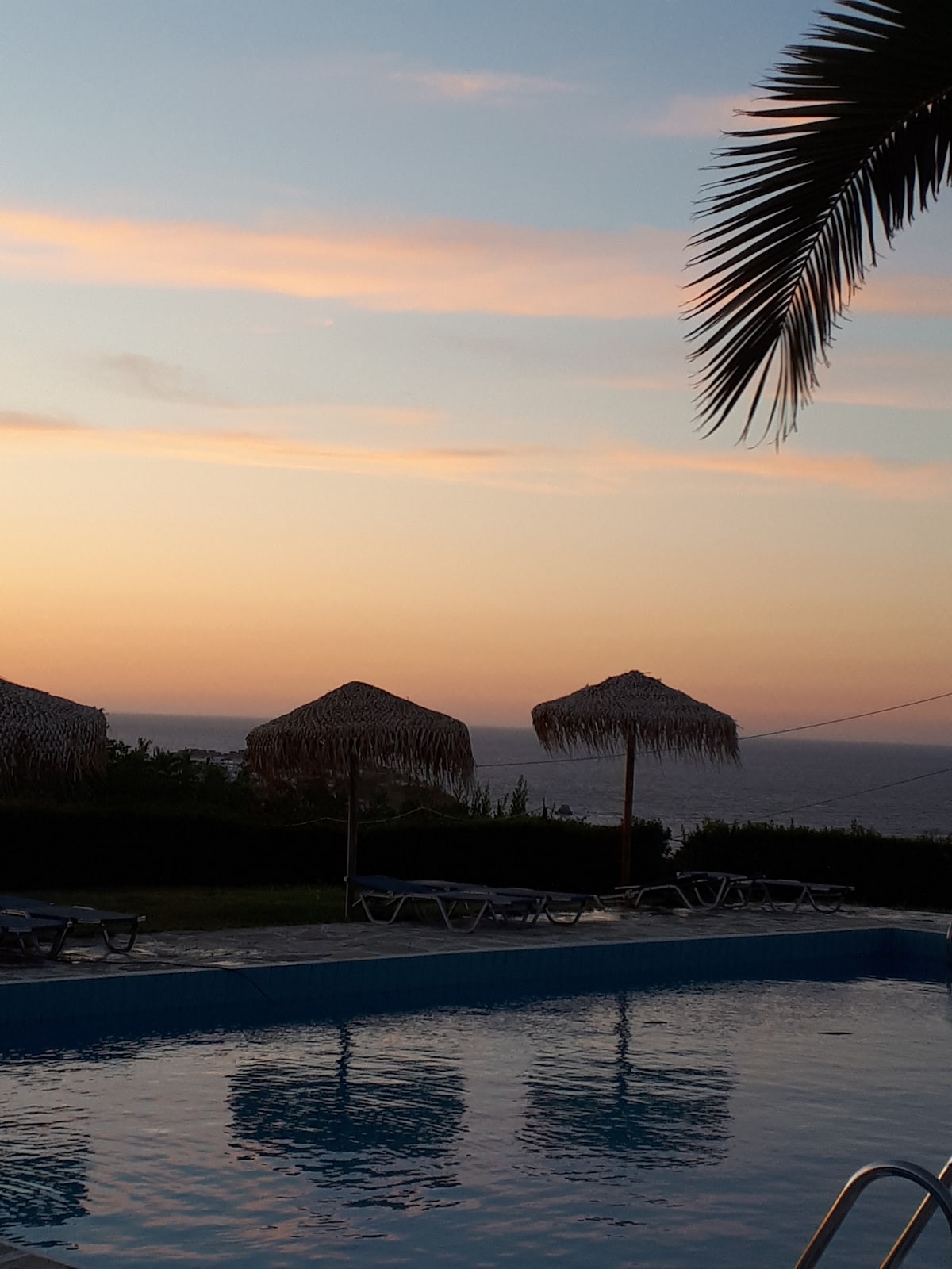 Our property have 2 buildings with 45 studios & apartments. all of them have separate bathroom , balcony . free of charge wifi, ac ,safe box , tv . our property have also swimming pool, Pool Bar and reception. All the rates are without breakfast that is cost 15 euro extra per person per day if you book for all your stay. Parking inside the property cost 7 euro per day and its preorder . An Adults only (12+) experience