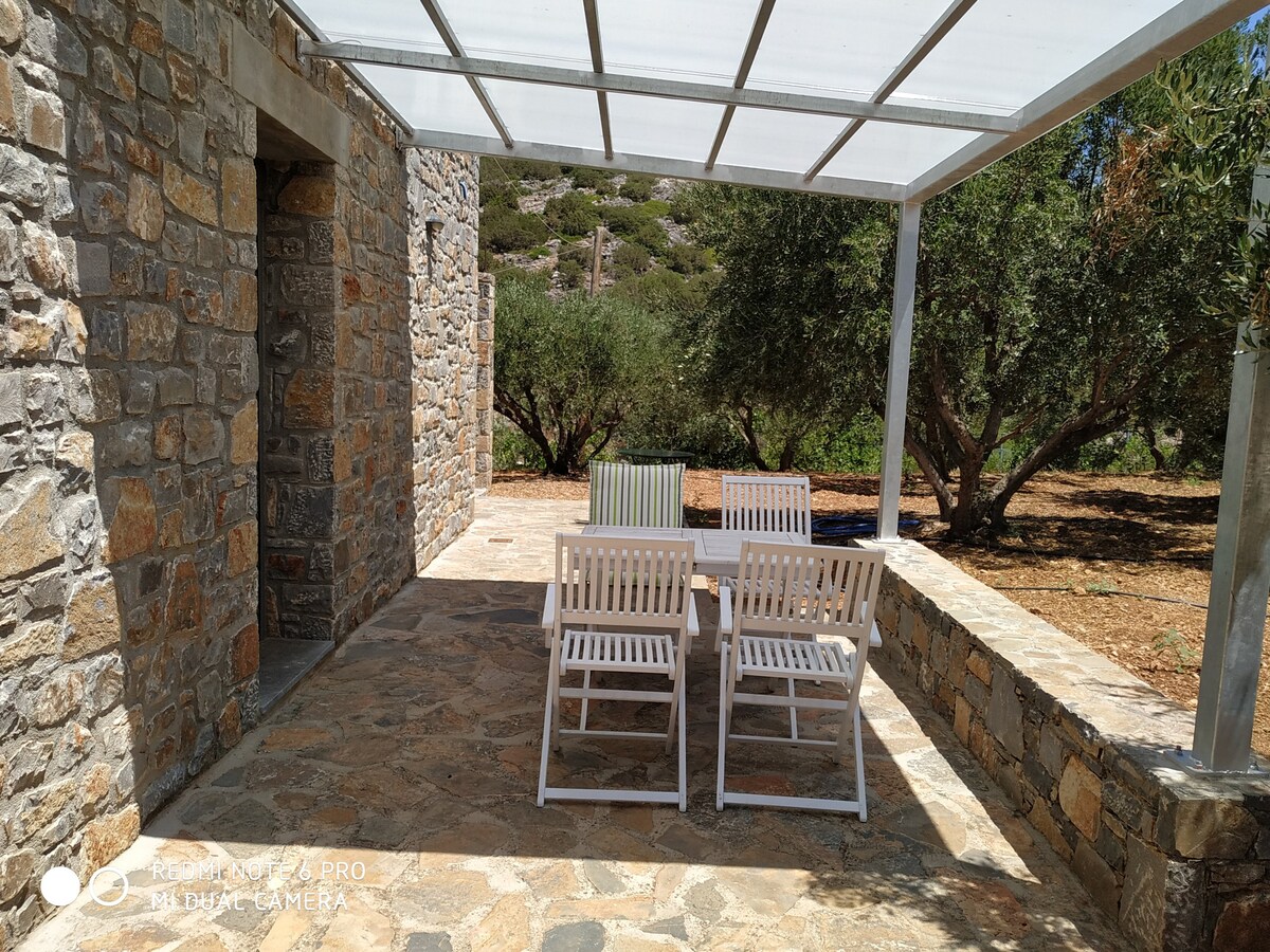 Stone House is in a beautiful, peaceful environment with an amazing view to the sea, to the mountains and with unbelievable sunsets. The greatest advantage of the Stone House , is the perfect isolation that offers. The 55 square metres house is located in 3000 squere metres privade land which makes it ideal for carefree savene vacations , in direct contact to the nature and away from human whenever you want it