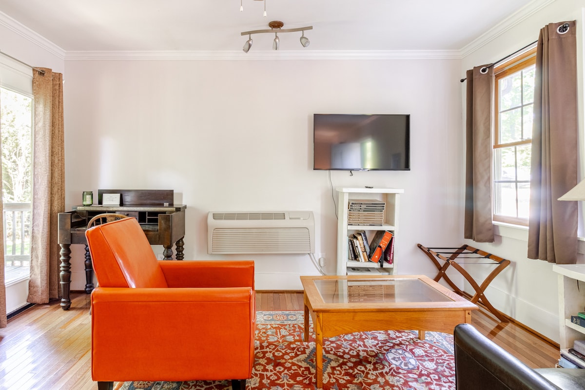 地理位置極佳!在這間位於Sewanee市中心的寧靜單間公寓放鬆身心。這個舒適的單人房空間配有雙人床、WiFi、串流電視、書桌、全套浴室和小廚房,配有烤箱、微波爐、冰箱和用餐區。地理位置優越,步行即可抵達塞瓦尼村(Sewanee Village)、南方大學(University of the South)和眾多徒步小徑。