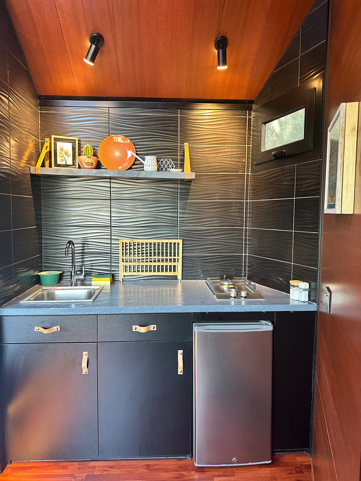 Cozy, private treehouse with outdoor pool, heated indoor hot tub, panoramic views, and smart projector with Netflix. Includes king size bed, full bathroom, kitchenette, BBQ, firepit, hammock, board games, and WiFi. The newest of the four unique treehouses of SEVENOAKS, built on the same land — perfect for couples or friends booking together. Breakfast, wine/cheese platters, and delivery service available. A peaceful escape in nature, just 40 min from Beirut.