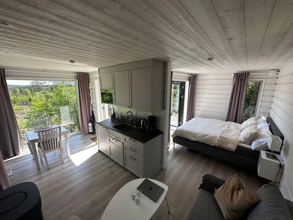Timmerhus med privat bastu.