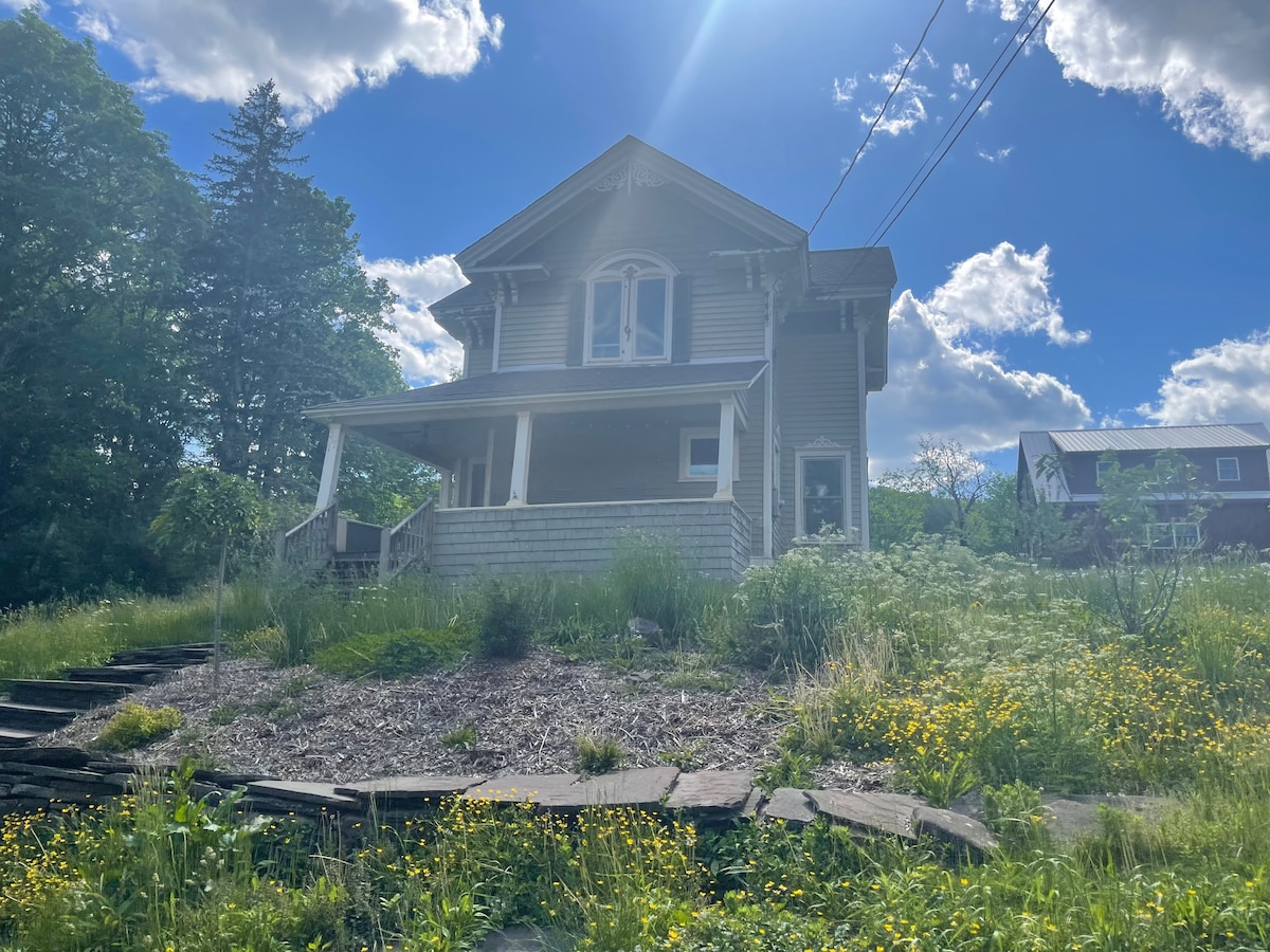 享受我們翻修的農舍。在這座寧靜的河畔小屋放鬆身心。從房子裡的每個房間聽到流淌的溪流。 小屋配有吊牀、後院火坑、私人遊泳坑、魚魚釣魚、聲音活躍喇叭、完整廚房、兩間配有大牀和洗衣房的臥室。周圍有200英畝的州土地,您可以自由探索。 小屋位於紐約市書店首都霍巴特。距離普拉特基爾山滑雪度假村( Plattekill Mountain ski resort )、貝萊爾山滑雪中心( Belleayre Mountain Ski Center ) 25分鐘。