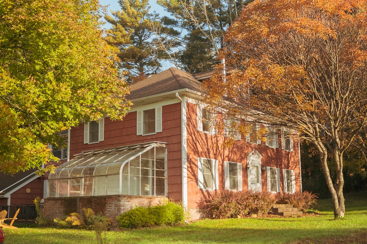這棟美麗的房子經過整修,提供完全的隱私和寧靜——坐落在一條安靜道路盡頭的 5 英畝土地上。 Mountain Terrace 配有室內木柴火爐、可欣賞美麗景色的露台、營火架、3 間臥室和 2 間浴室,主起居空間的天花板為雙層高。 有洗衣機/烘乾機、洗碗機、藝術家小屋和私人瑜伽室。 開車15分鐘即可抵達利文斯頓莊園( Livingston Manor ) ,這裡有很棒的餐廳、購物和活動。適合寵物入住。