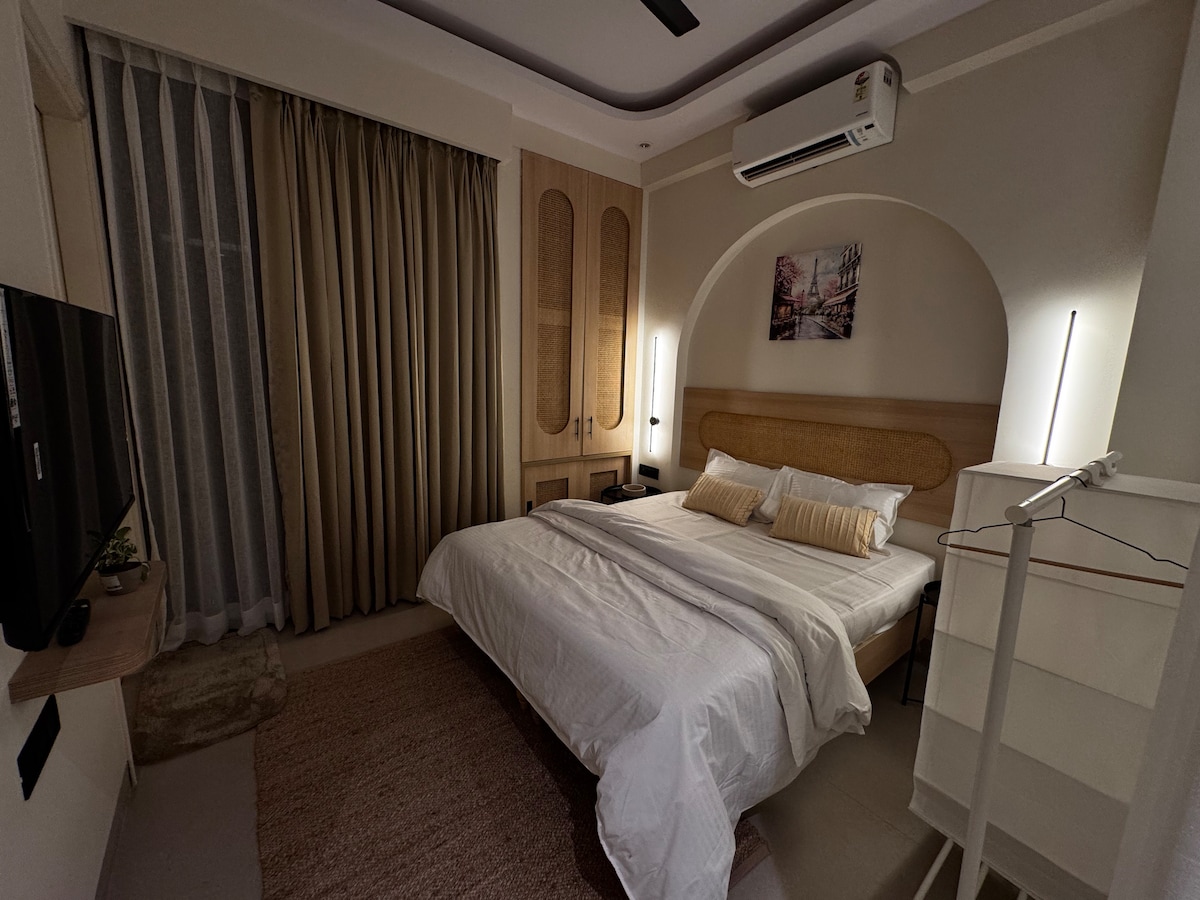 Modern Fully Furnished Studio near Yashobhoomi Convention Center & Delhi Airport! Perfect for businesses travelers or leisure stays, this studio apartment offer stylish interior, high speed Wi-Fi, smart TV, small kitchenette, fridge, washing machine, cozy bed and many more. Located on Dwarka Expressway surrounded by popular cafe and restaurant like Dominos, Subway, Haldiram, and many more. Secure Building 24/7 access, easy connectivity.