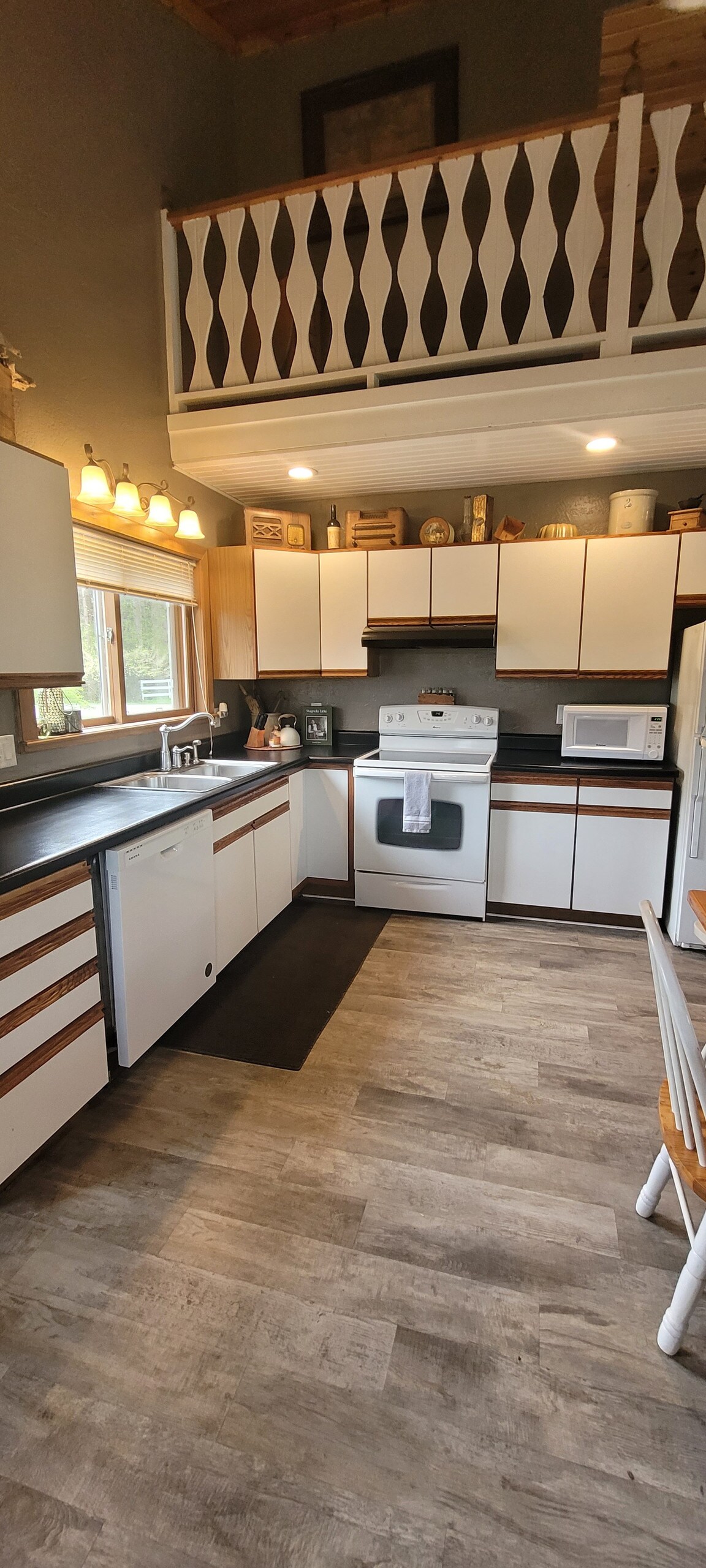 我們最近翻新的小屋,讓人沉浸在現代與復古風情之中。舒適而開放的樓層平面圖,配有大窗戶和露臺門,讓您可以在門外欣賞到水和野生動物的寧靜景觀。我們的樓上閣樓有2張床,作為我們的第三間臥室。樓下設有設備齊全的廚房、寬敞的用餐區、兩間臥室、充足的衣櫃空間、配有洗衣機和烘乾機的洗衣房,讓您享受如家一般的舒適。