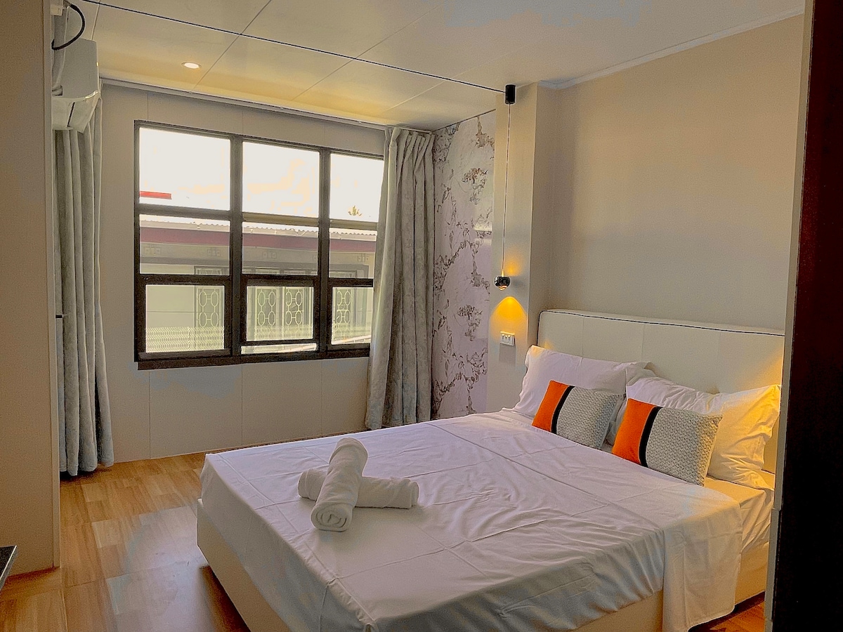 这可能是您在楠迪获得的最优质的现代2卧室公寓。 房源设有3间空调卧室以及带空调的客厅,3间卧室均配备加大双人床。其中1间卧室设有独立卫生间,还有一间公共卫生间,第三间卧室配有一张双人床。 房源设有休息室、开放式餐厅和厨房。 配备烹饪设施。 电器包括电饭煲、微波炉、冰箱、电水壶。一共可容纳6人同时入住。步行3分钟到达麦当劳(麦当劳营业时间早上7点-晚上12点) 开车15分钟即可抵达机场/Denarau , 2分钟可达电影院、市中心。 我们的公寓所有床品保证一客一换,我们有专业清洗床品的工厂。