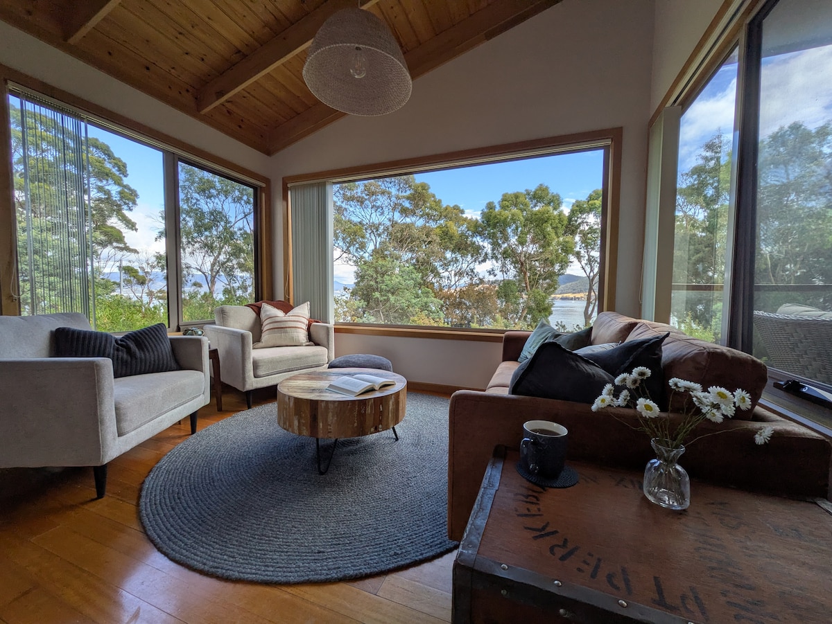 Bruny Beach House位於Bruny Island的北部,位於Dennes Point ,距離長而美麗的內布拉斯加海灘的高潮僅40米,可俯瞰D'Entrecasteaux海峽的180度壯麗景色。 陽光明媚的起居區域,所有房間都能欣賞到不斷變化的山景和海景。BBH是補充靈魂和遠離世界的地方。舒適的牀和休息室套房、設備齊全的廚房等!