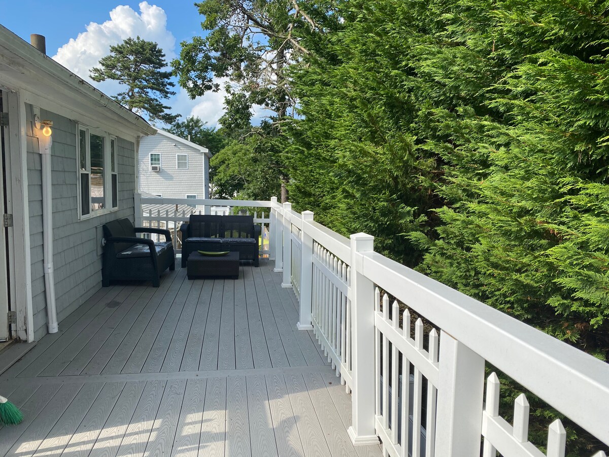 歡迎來到我們迷人寬敞的3床2全功能浴室海灘別墅,位於科德角丹尼斯港下縣海邊。最近安裝了中央空調、新床單、餐具和廚房用具。黃金位置, 步行4分鐘即可抵達公共海灘和Sundae School和The Ocean House等景點。額外的房間可作為遊戲室。在前門廊的繡球花和玫瑰灌木旁放鬆身心,或在後甲板的可伸縮遮陽篷下享用戶外用餐。來我們的海灘房屋享受科德角!