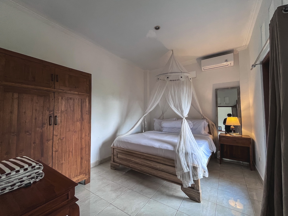 Lovely 3 bedroom villa with a spacious living room. Seminyak, Canggu and many beaches just a heartbeat away. This villa offers 3 bedrooms with AC and en-suite bathrooms, a closed living room with Ac and TV, big pool, big kitchen with bar, sun beds and parking space for 2 cars. • Fast WIFI • Daily cleaning • Equipped kitchen • Hair dryer • Guaranteed privacy/Private villa • Car Parking • Smart TV, cable tv with many channels • Bathrooms with bathtubs