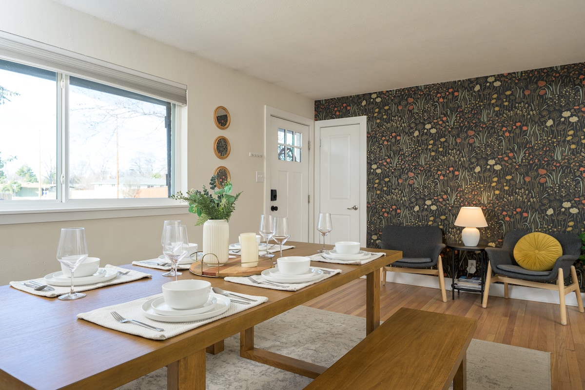 This beautifully unique mid-century modern gem promises an unparalleled living experience during your stay. Prepare to be wowed by the fantastic features that await you: 🍽️ Chefs Kitchen; 🛁 Luxury Master Bath/Suite; Ample Space: Accommodate your family, friends, or establish a productive workspace with 3 additional bedrooms and 1 office. The 3 bathrooms ensure convenience for everyone; 🌳 Large Fenced-in Yard; 🔥 Entertaining Patio with Firepit.