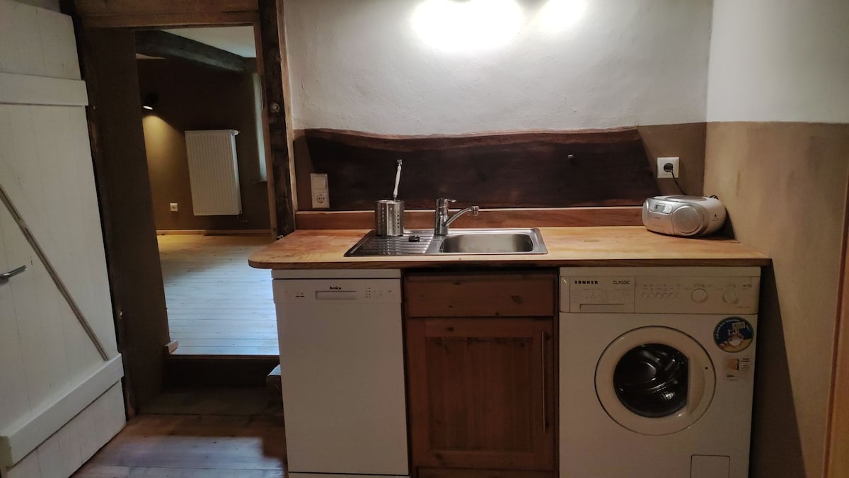 您住在一間位於德特莫爾德附近的房子,房子是1774年建造的半木結構,配備健身房、電影院、涼亭和泰託堡森林的開放景觀。 全套廚房、紅外線桑拿、配備烤箱和電暖器的舒適房間。 臥室有粘土牆,第二間在屋頂下。 房子前面就有花園,供您自己使用。 歡迎兒童和寵物入住。 超市1.1公里,市區3.5公里。 電暖或爐暖,含木柴