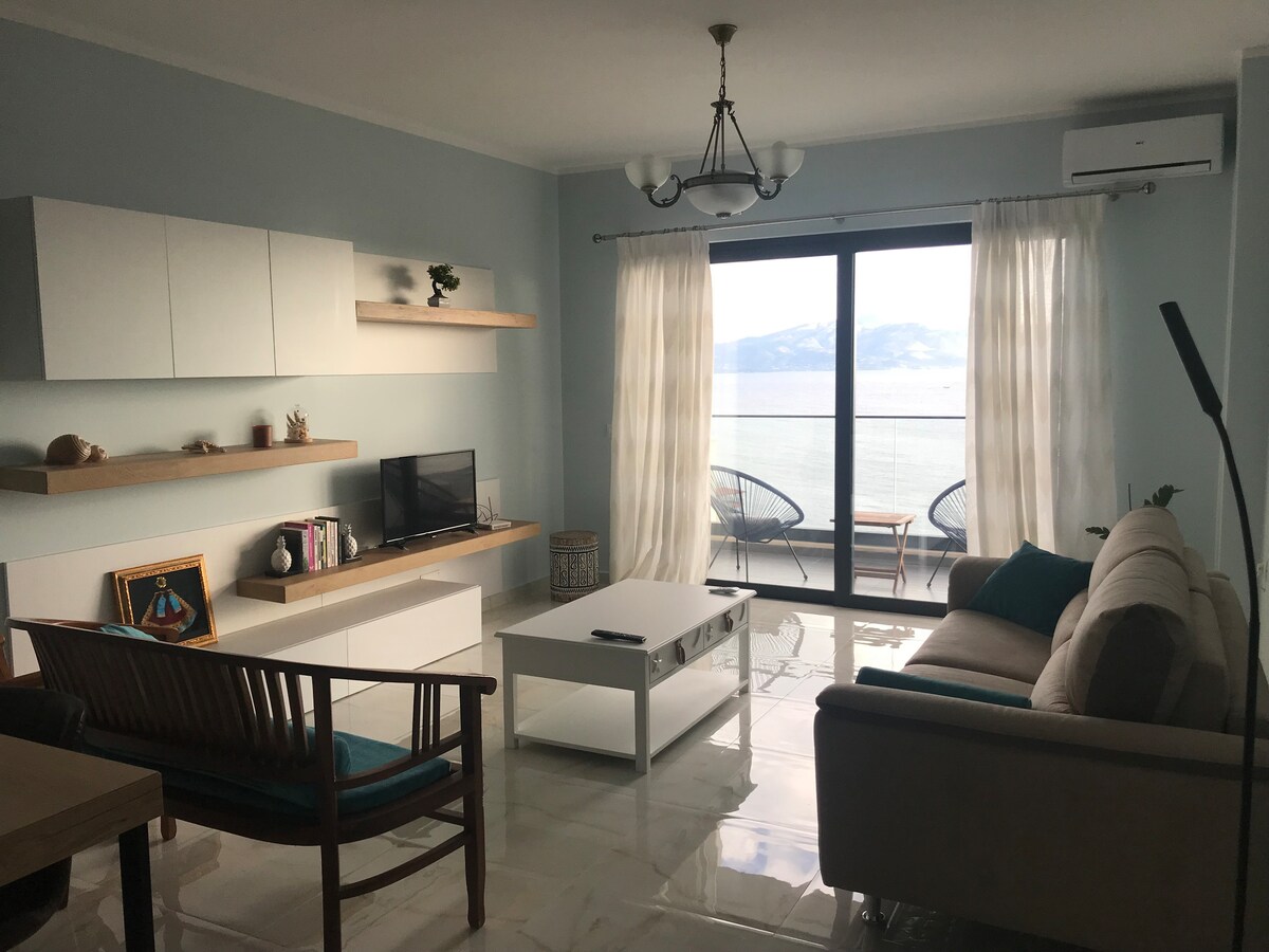 入住這間明亮通風的公寓,距離海灘僅50公尺! 您可以欣賞壯麗的海景,有私人陽臺,非常適合家庭入住。 如果您正在尋找景觀和位置極佳的大公寓,那麼請不要再尋找了。公寓有一個大陽臺,您可以在那裡欣賞美麗的景色,感受新鮮空氣。它有家庭所需的一切。請隨時預訂Vlora的美景。 旅行就是生活- Hans Christian Andersen