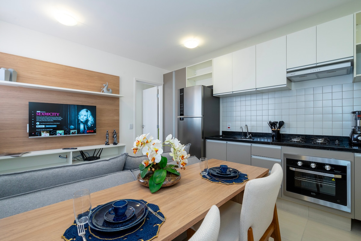 *APARTAMENTO LIMPO, ACONCHEGANTE E MODERNO. * EQUIPADO COM ELETRODOMÉSTICOS, UTENSÍLIOS DE COZINHA, ESPAÇO HOME OFFICE E WI-FI DE EXCELENTE QUALIDADE. * A INSTALAÇÃO CONTA COM SISTEMA DE INTELIGÊNCIA ARTIFICIAL ALEXA. * OFERECEMOS PARA NOSSOS HÓSPEDES COMO CORTESIA WI-FI 5G ULTRA RAPIDA, NETFLIX, PRIME VIDEO, HBO MAX E AMAZON MUSIC. COMO O PRÓPRIO NOME JÁ DIZ, AQUI VOCÊ TERÁ TUDO QUE PRECISA. CONFIRA TODOS OS COMENTÁRIOS DEIXADOS POR HÓSPEDES AQUI HÓSPEDADOS. ESPERO VOCÊ, ATÉ MAIS.