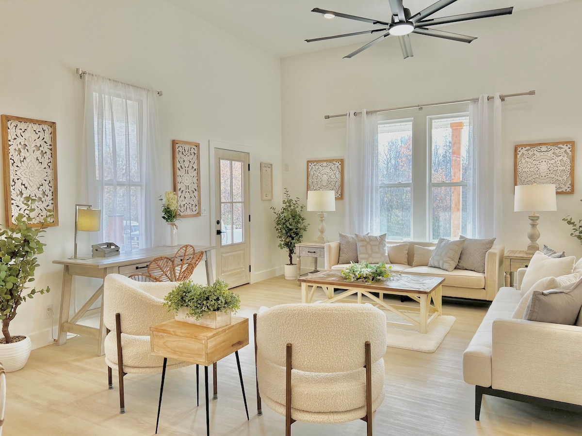 * *距離迪克森市中心7分鐘,距離蒙哥馬利貝爾州立公園2分鐘 這座最近翻新的1947年農舍佔地10英畝,融合了新舊風格,是完美的度假勝地!原始的硬木地板、前門和廚房櫥櫃與新家具和現代裝飾完美搭配。在手工製作的廚房吧台享用早晨咖啡,欣賞寧靜的景色,並在舒適的戶外火坑旁欣賞風景如畫的日落。納什維爾和富蘭克林就在附近,非常適合一日遊!
